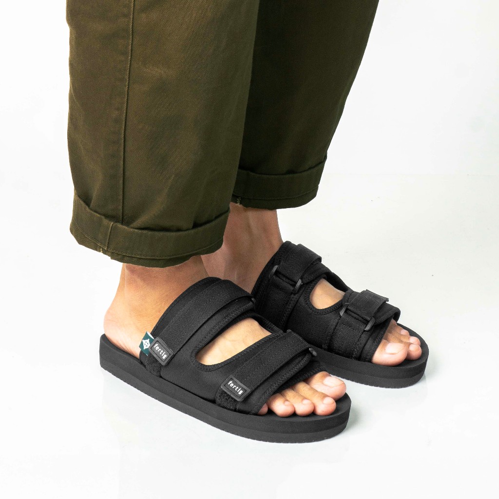 Fertig - Devo Black – Sandal Slipper Unisex Open Toe Ringan & Nyaman