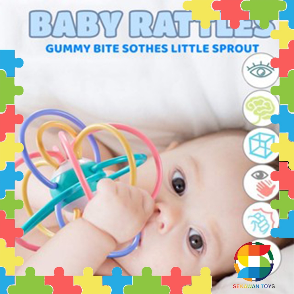 Mainan Gigitan Bayi Bola Baby Ratles Dan Teether / Bola Mantahattan teether bayi / bola tangan gerinda / bola Manhattan