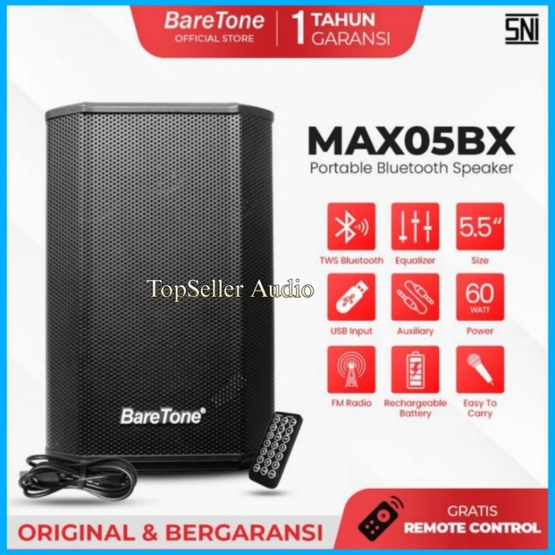 BareTone Speaker Portable MAX05BX Bluetooth Tws 5" Inch Original 2 Mic Wireless Garansi Resmi 1 Tahun