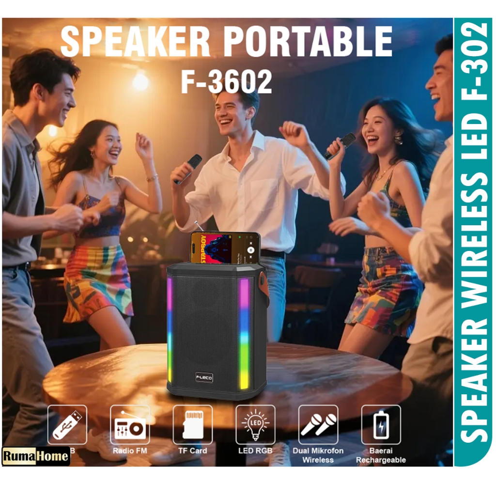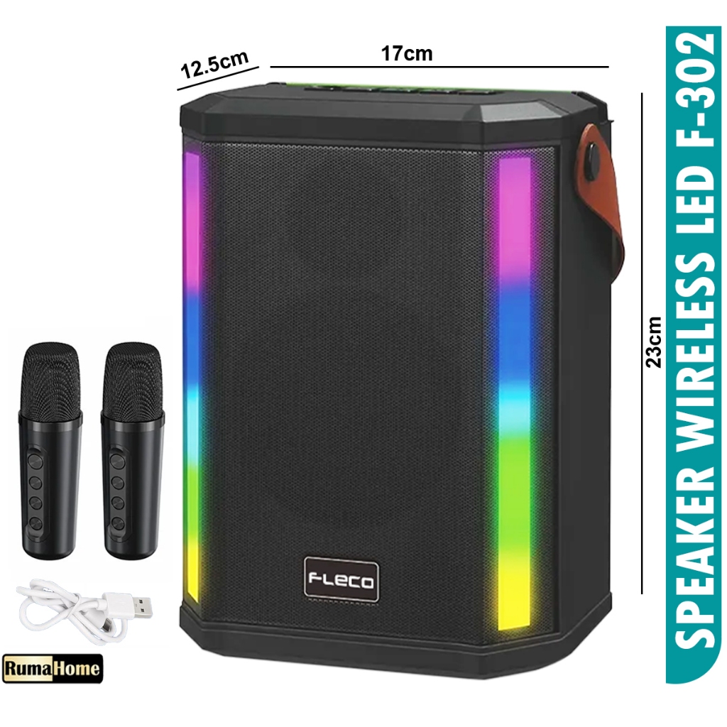 Speaker Bluetooth 4 inch Portable 1 Tahun garansi ORI Fleco F-302 / F-417 Gratis Microphone Karaoke Super Bass