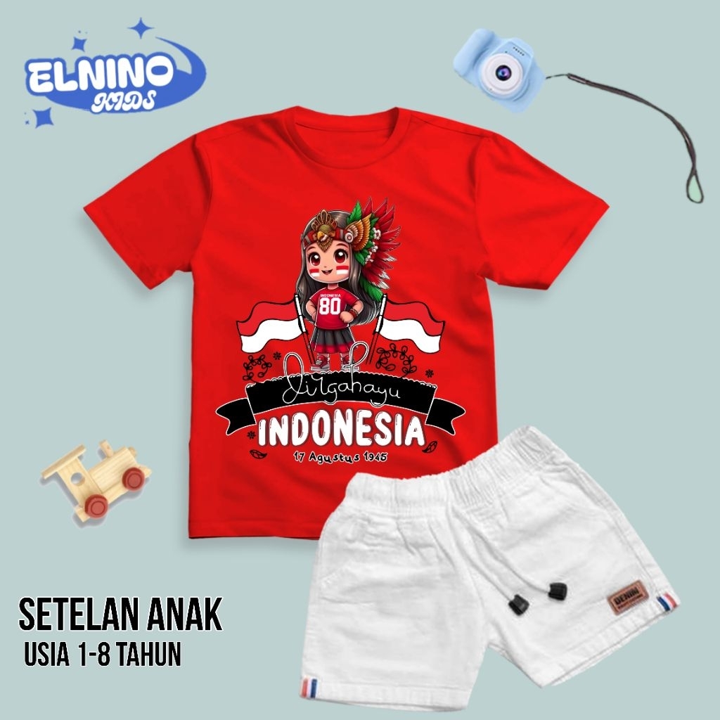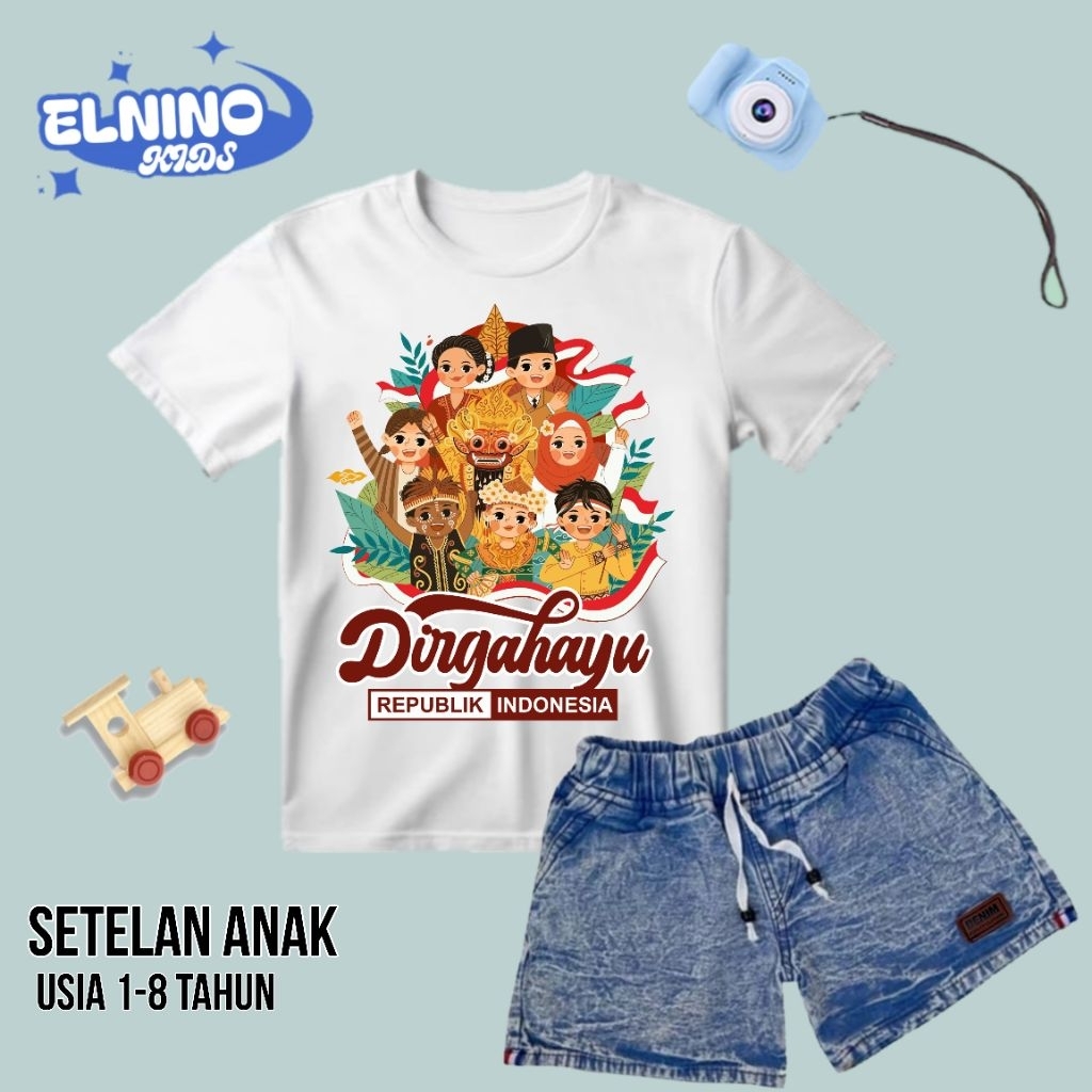 SETELAN JEANS ANAK USIA 1-8 TAHUN LAKI-LAKI DAN PEREMPUAN MOTIF KEMERDEKAAN REPUBLIK INDONESIA SERIES II