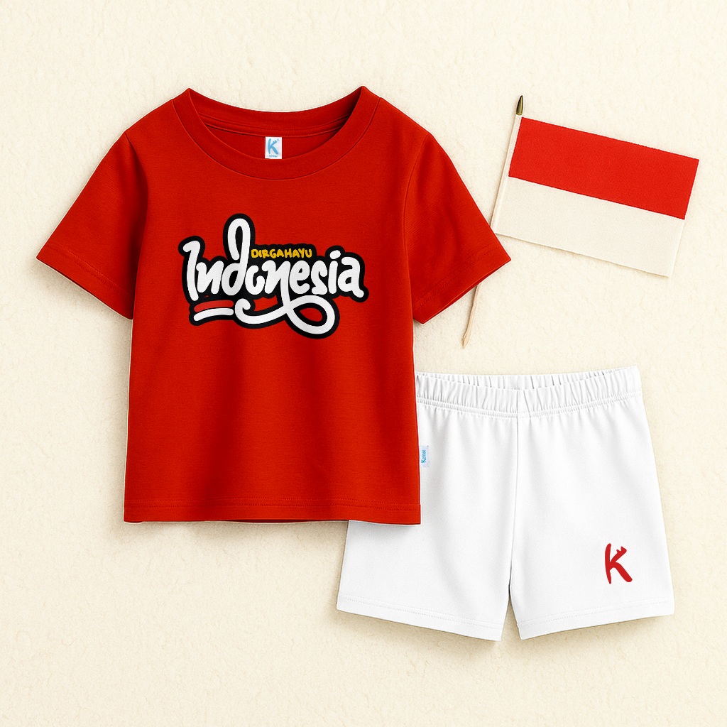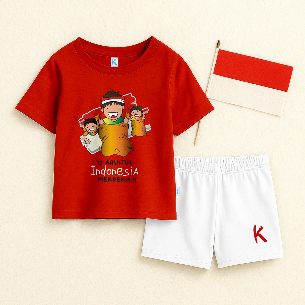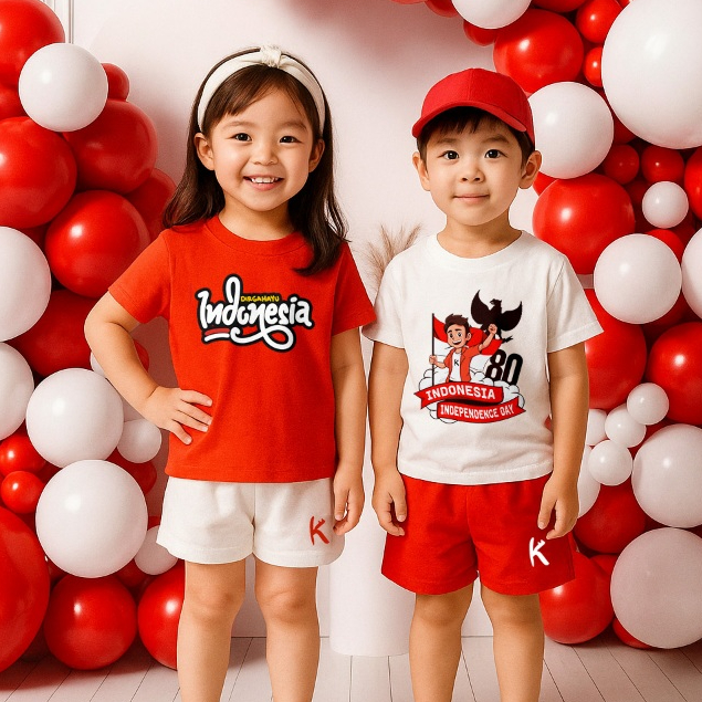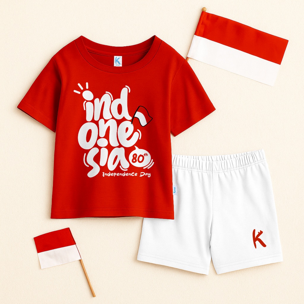 KENNAI SETELAN PENDEK MERAH PUTIH 17 AGUSTUS ANAK LAKI LAKI DAN ANAK PEREMPUAN USIA 1-12 TAHUN SERIES KEMERDEKAAN HUT RI 80
