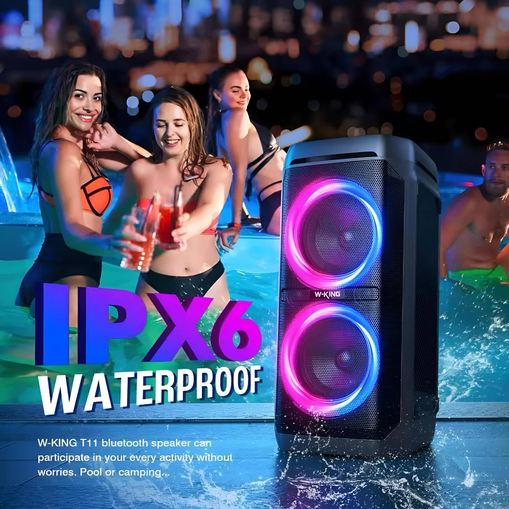 WKING Speaker Bluetooth Karaoke MIC Wireless TWS T11+ 2 Microphone Super bass 100W Waterproof