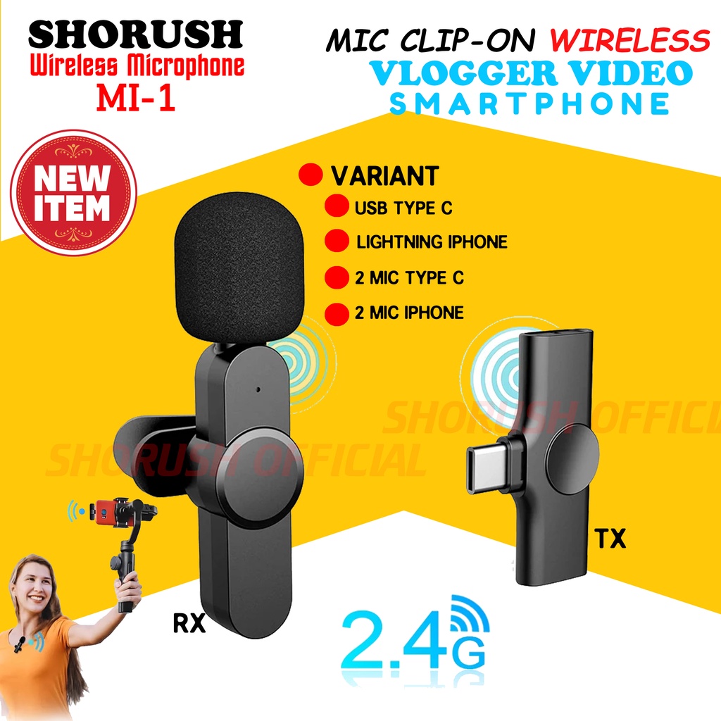 Shorush MI-1 Microphone Mic Clip On Wireless 2.4Ghz HP VLOG Youtuber Portable USB Type C Android Lightning Plus Iphone X XR XS 11 Pro Max SE 2 Dual