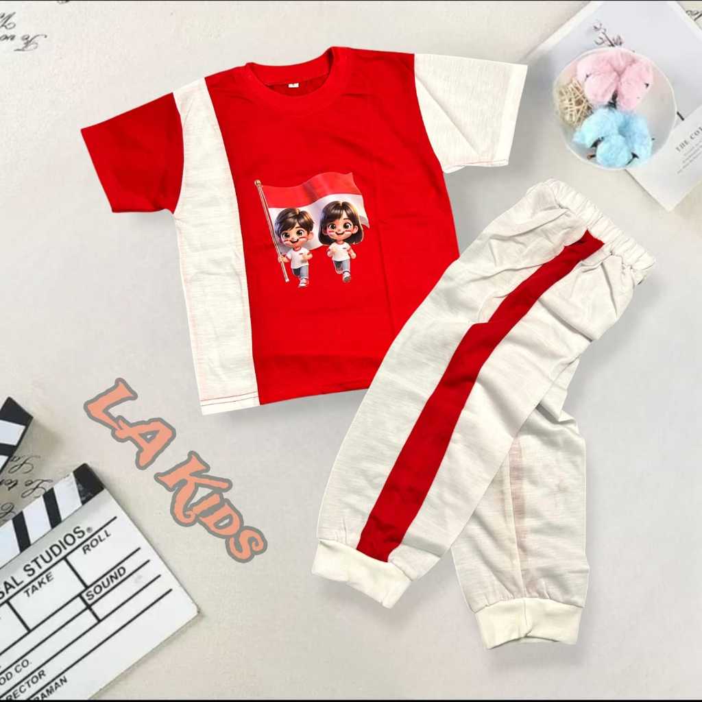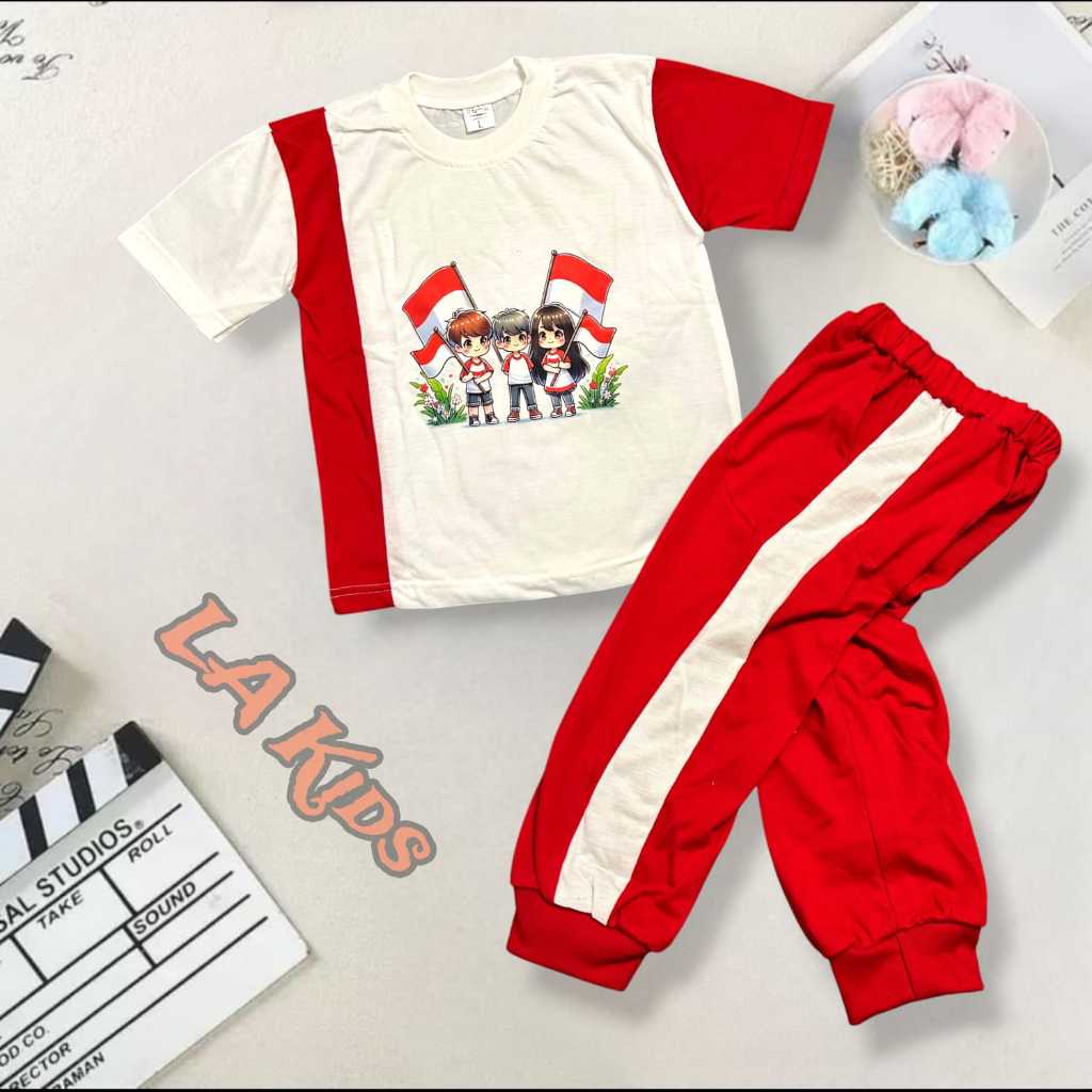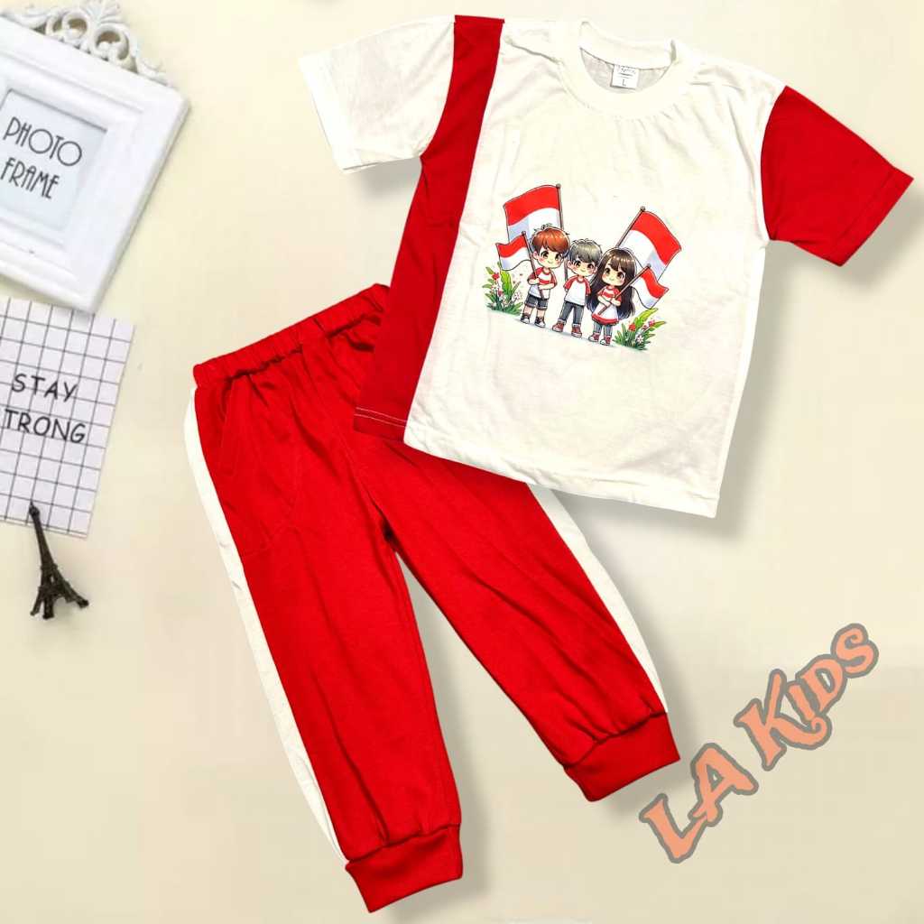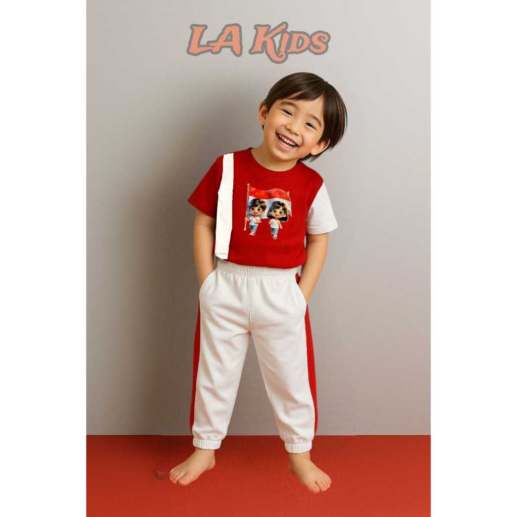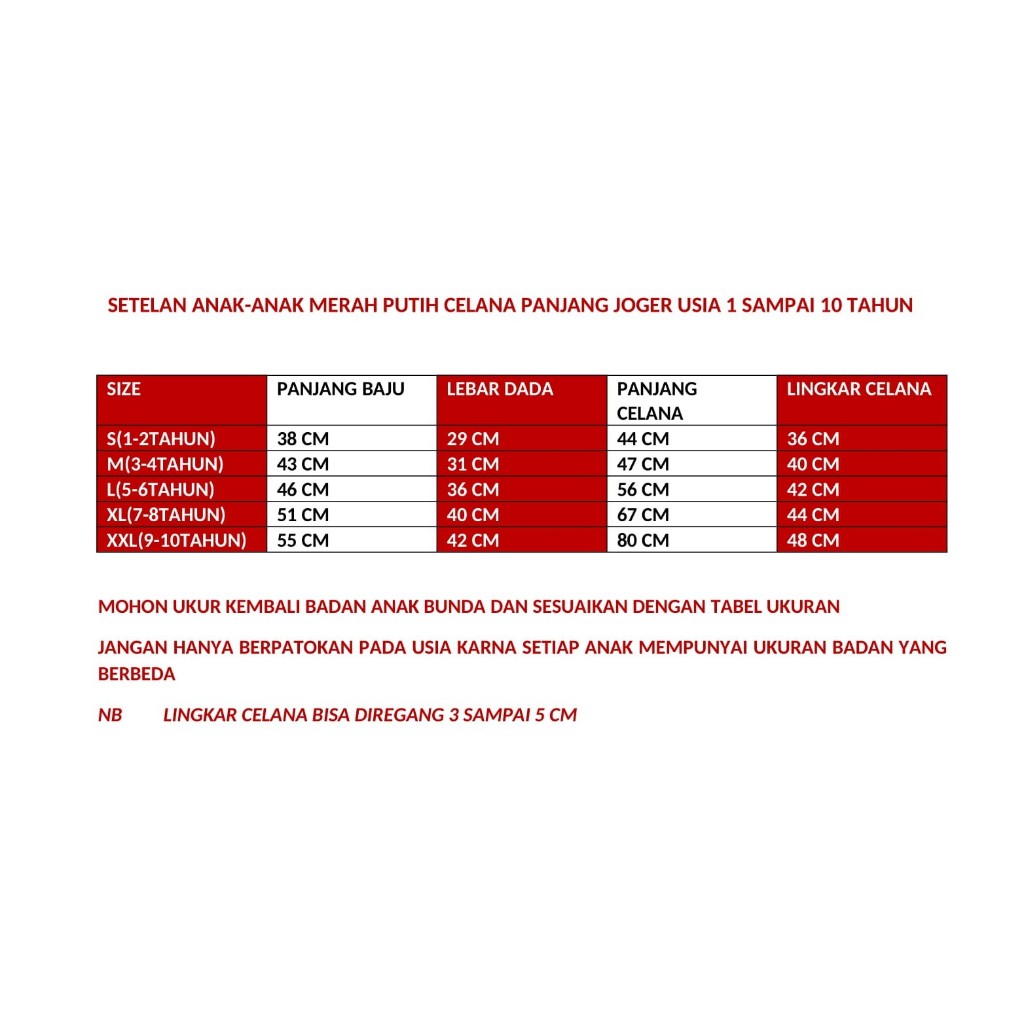 SETELAN MERAH PUTIH MODEL KEKINIAN CELANA JOGER BUAT USIA 1-10 TAHUN