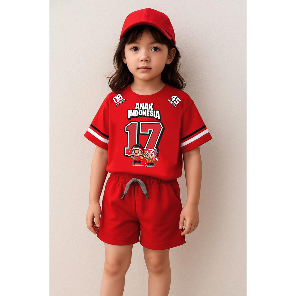 SETELAN BAJU ANAK 17 AGUSTUS CELANA PENDEK KAOS LENGAN PENDEK