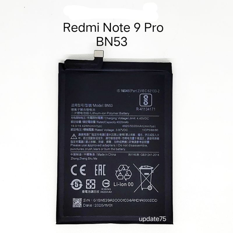 Batre Baterai Redmi Note 9 Pro 4G Redmi Note 10 Pro 4G BN53 BN 53 Batrei Original 100 PERSEN DISTRIBUTOR