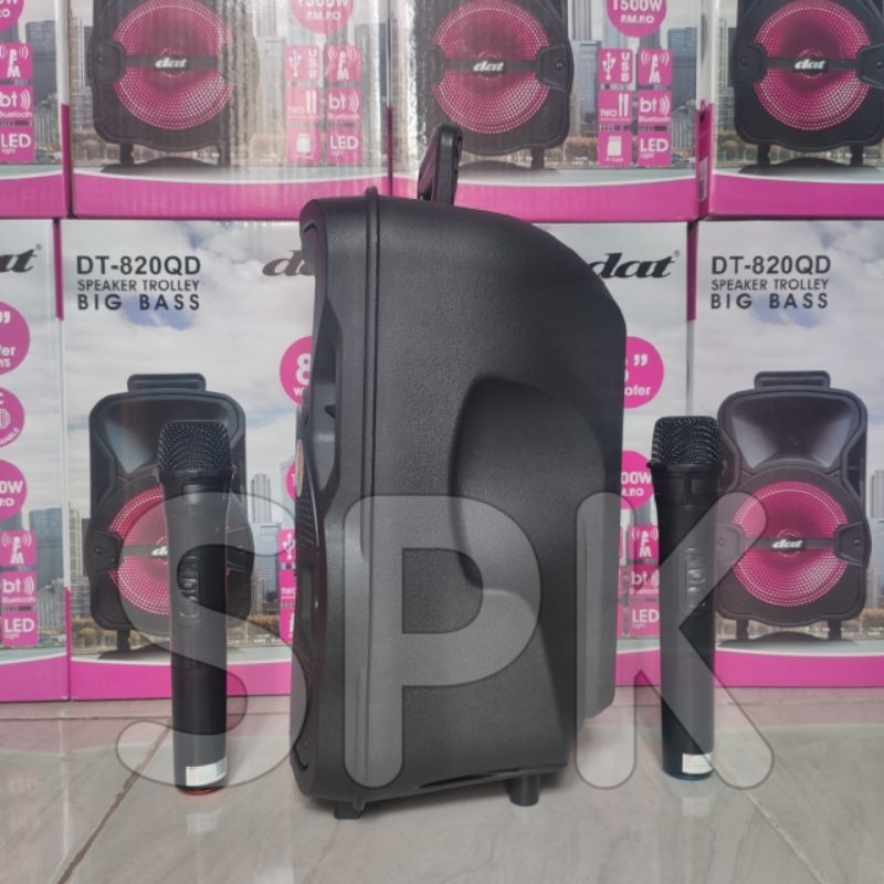 Speaker Portable DAT DT 820QD 8 inch 2 Mic Wireless
