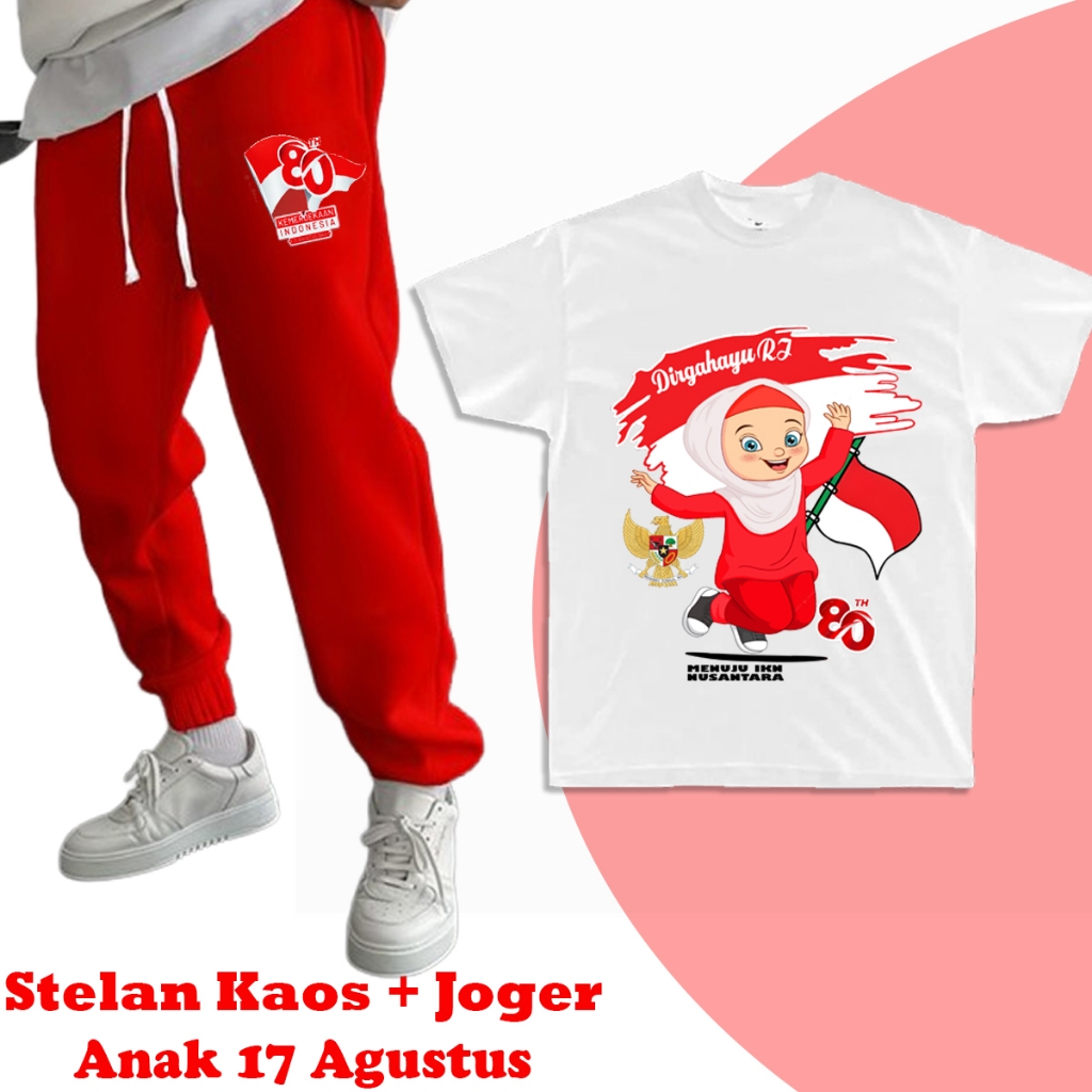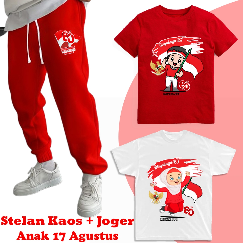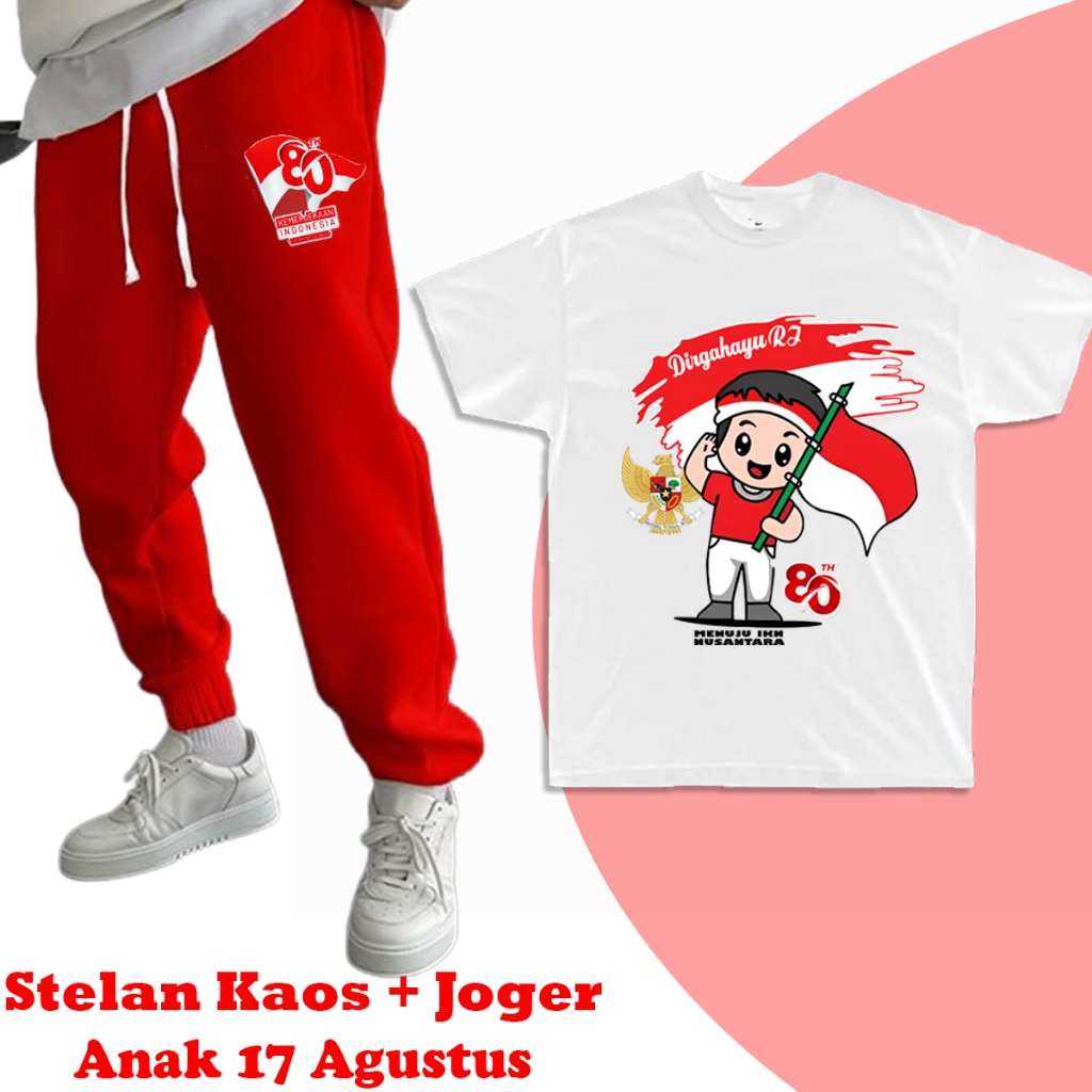 SETELAN AGUSTUS ANAK LAKI LAKI & PEREMPUAN 2025 SETELAN JOGER ANAK KEMERDEKAAN 17 AGUSTUS 2025 UNISEX KATUN WARNA MERAH PUTIH DIRGAHAYU RI 80