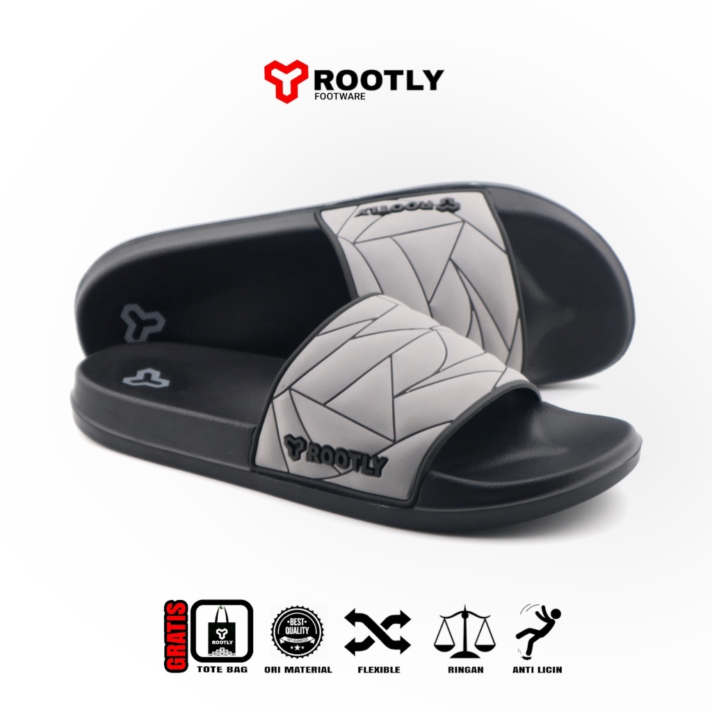 Rootly - Sandal Pria Slide Full karet Ringan Rush Abu