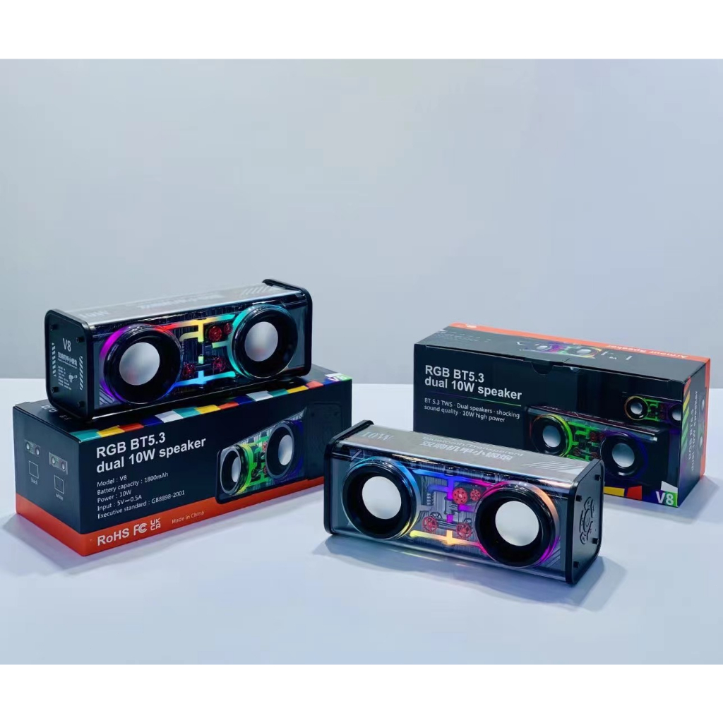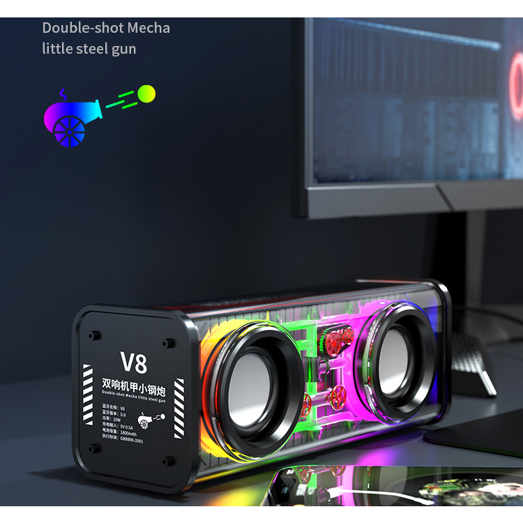 Mecha speaker bluetooth subwoofer meriam baja kecil transparan audio portabel nirkabel 10w