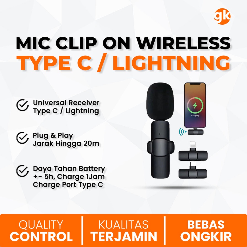 Mic Clip On Wireless Type C / Lightning iP 2.4G Youpin Microphone Bluetooth Clear Sound Record