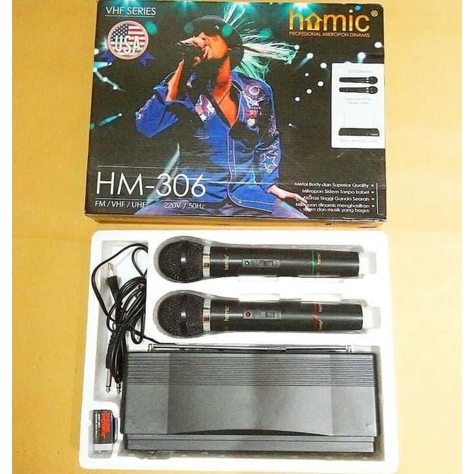Mic Microphone HOMIC Double Wireless HM-306 HM-306 VHF Series//MIC KARAOKE//MIC WIRELESS HOMIC HM-306