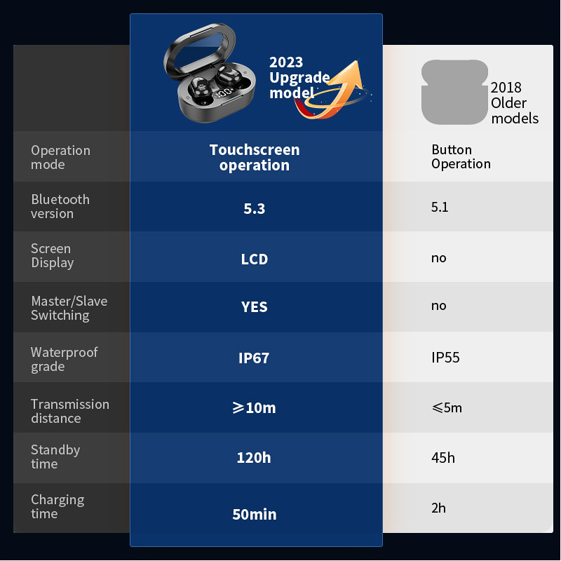 Jovitech TWS E8S Earphone Bluetooth Wireless Earbuds Touch Button LED Display Waterproof - T71