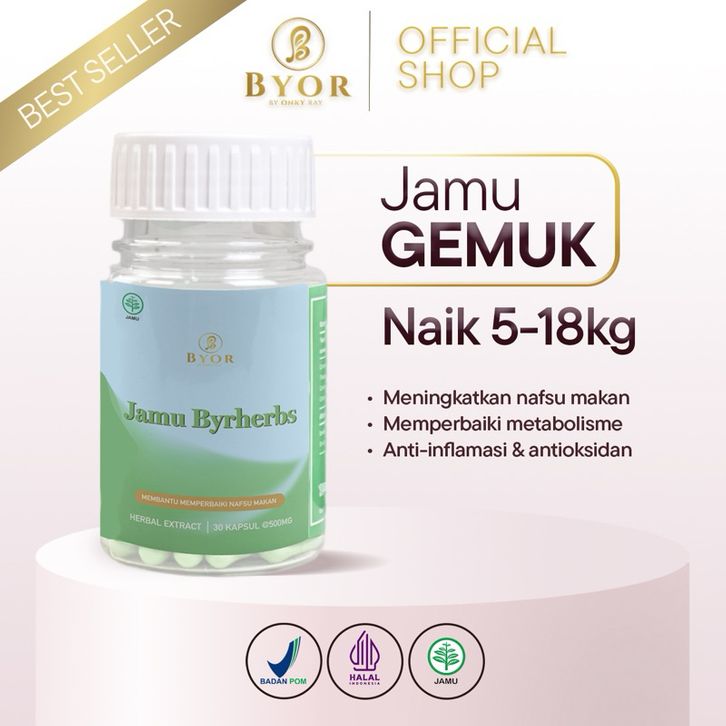 Obat Gemuk Badan Dewasa Herbal BYOR Jamu Kapsul Gemuk Penambah Nafsu Makan BPOM Isi 30 Kapsul