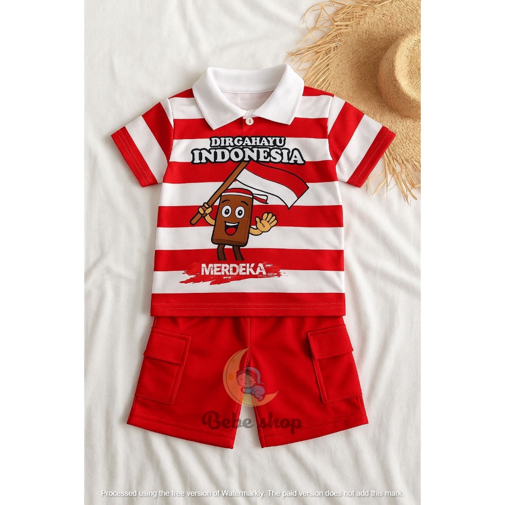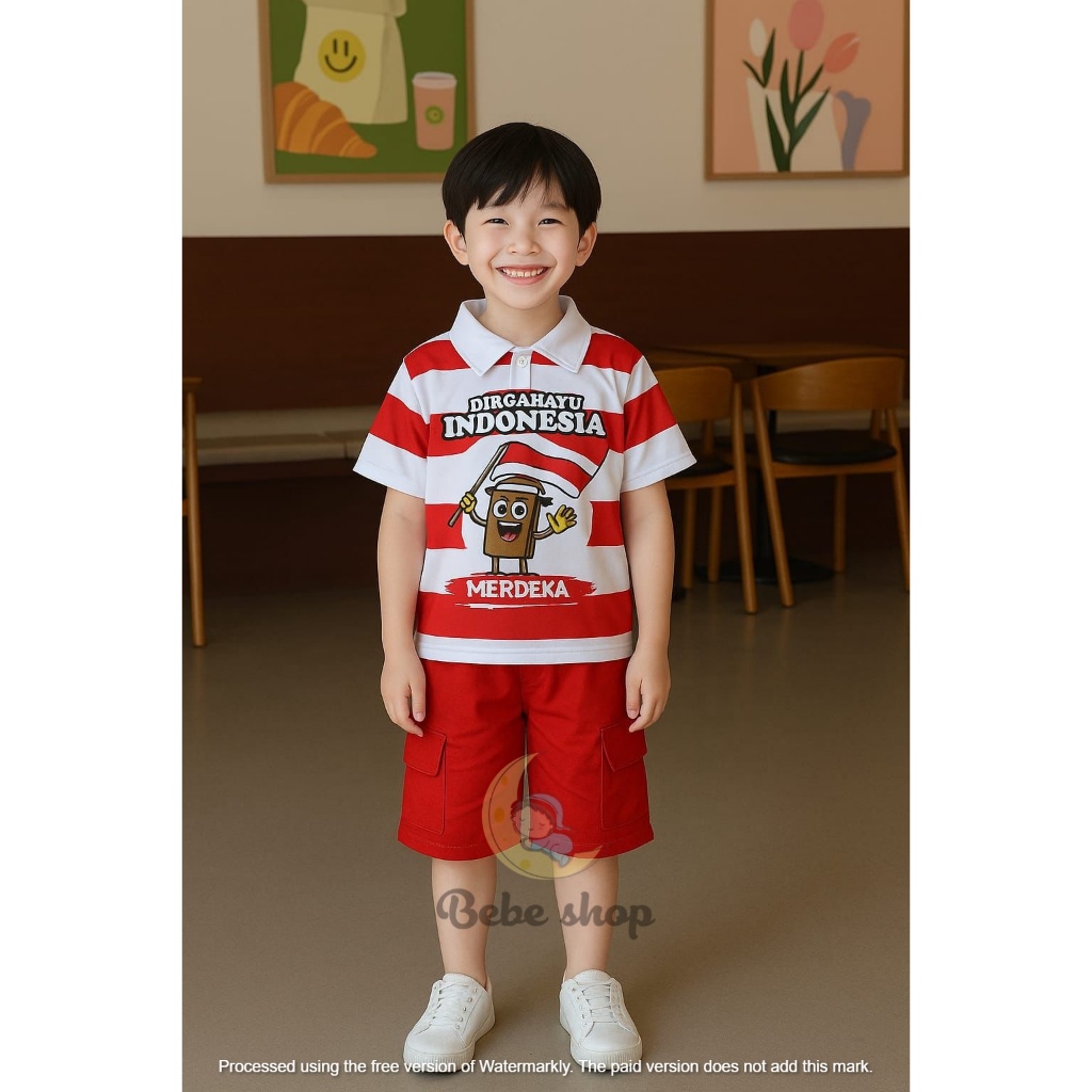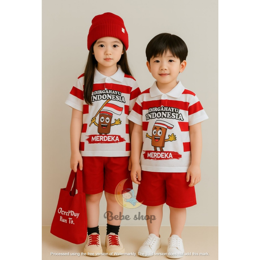 SETELAN MERAH PUTIH ANAK LAKI LAKI DAN PEREMPUAN MODEL TERBARU MOTIF SALUR TUNG TUNG USIA 1 SAMPAI 6 TAHUN
