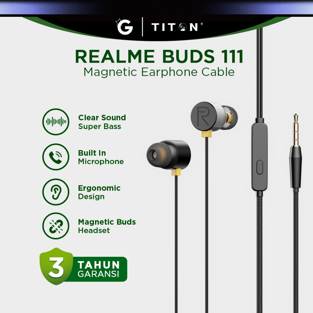 Cable Earphone Titon Buds 111 for Realme | Headset Handsfree Bass Stereo On | Magnetic buds - Microphone on