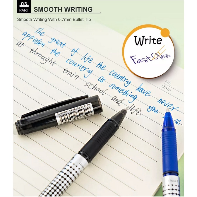 M&G Pulpen Gel Bisa Dihapus Premium Gel Pen Erasable 0.7 mm Hitam dan Biru Dapat Dihapus dengan Penghapus Pen Solusi