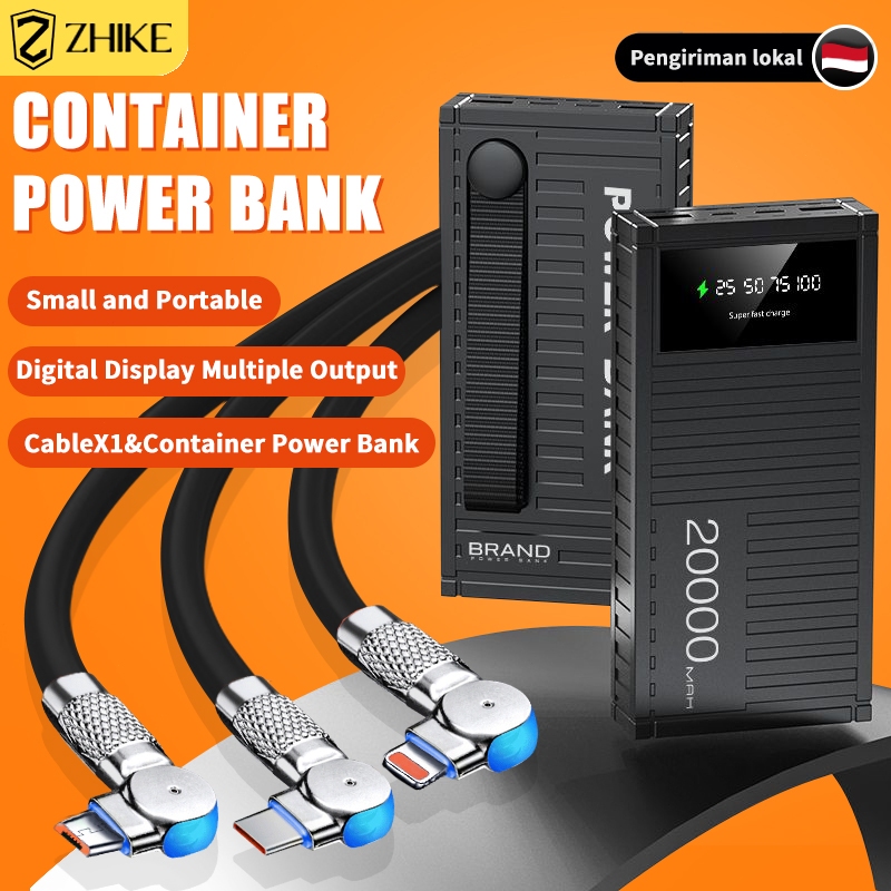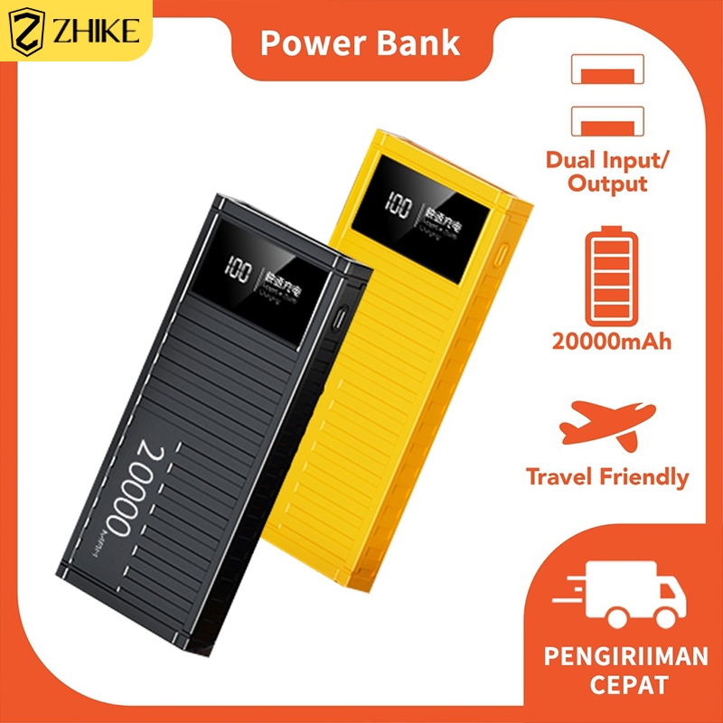ZHIKE PowerBank 20000mAh Power Bank 50000mAh Charger Fast Charging Dengan Kabel Data 3 in 1 Adaptor LED Indicator powerbank Dual Output Dual Input Portable Charger Baterai