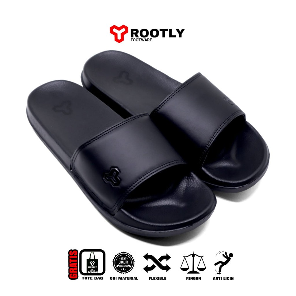 Rootly - Sandal Pria Hitam Polos New Logo Timbul