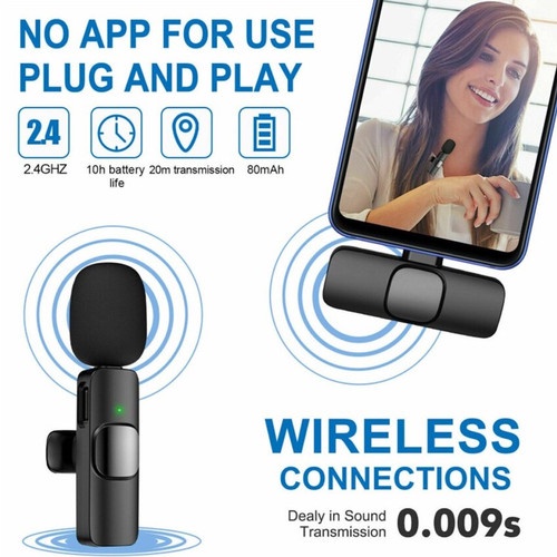 Mic Clip On Wireless Type C / Lightning iP 2.4G Youpin Microphone Bluetooth Clear Sound Record