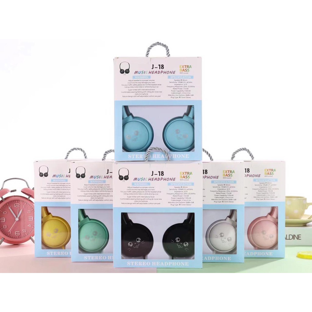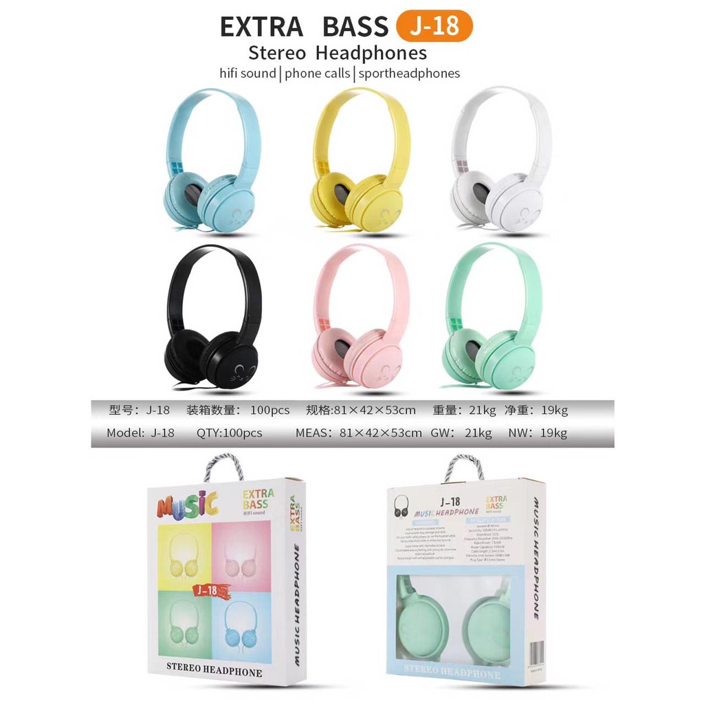 Headphone Macaron Bando J18 + Microphone Extra Bass Earphone - Handsfree - Headset Bando