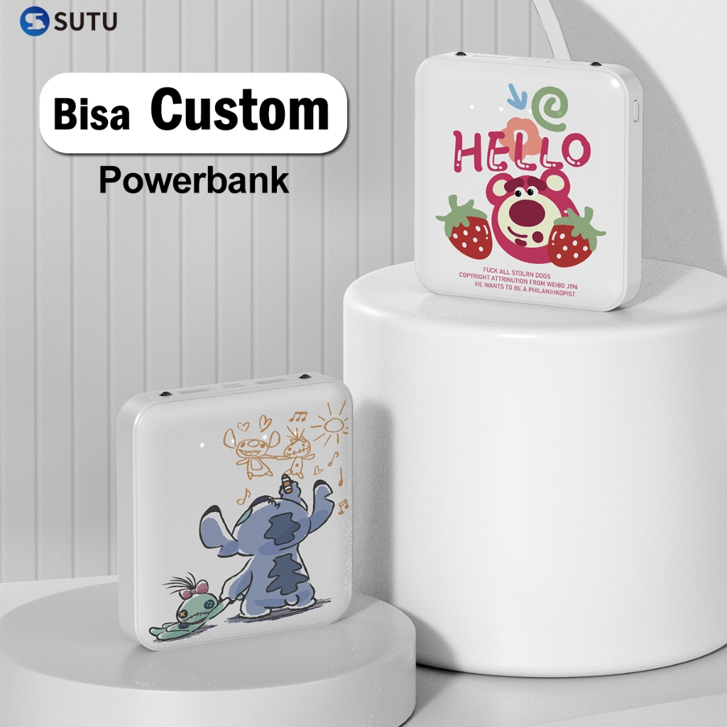 SUTU Custom Powerbank 20000 mAh Dual USB Output Gambar Kustom Power Bank Gaya kartun Lucu Mini UV