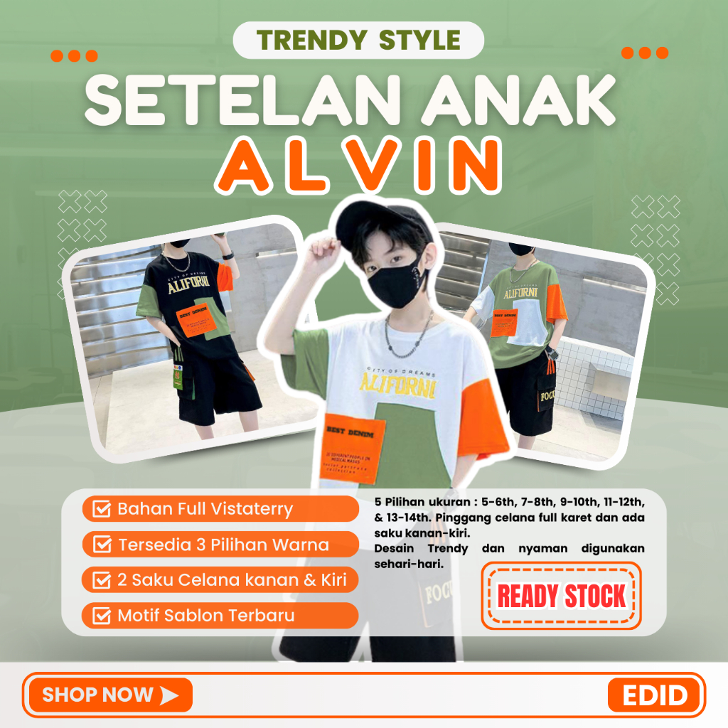 MOKOKOMO - SETELAN ANAK LAKI-LAKI ALVIN LENGAN PENDEK USIA 7-8 9-10 11-12 FASHION KIDS MODEL TERBARU