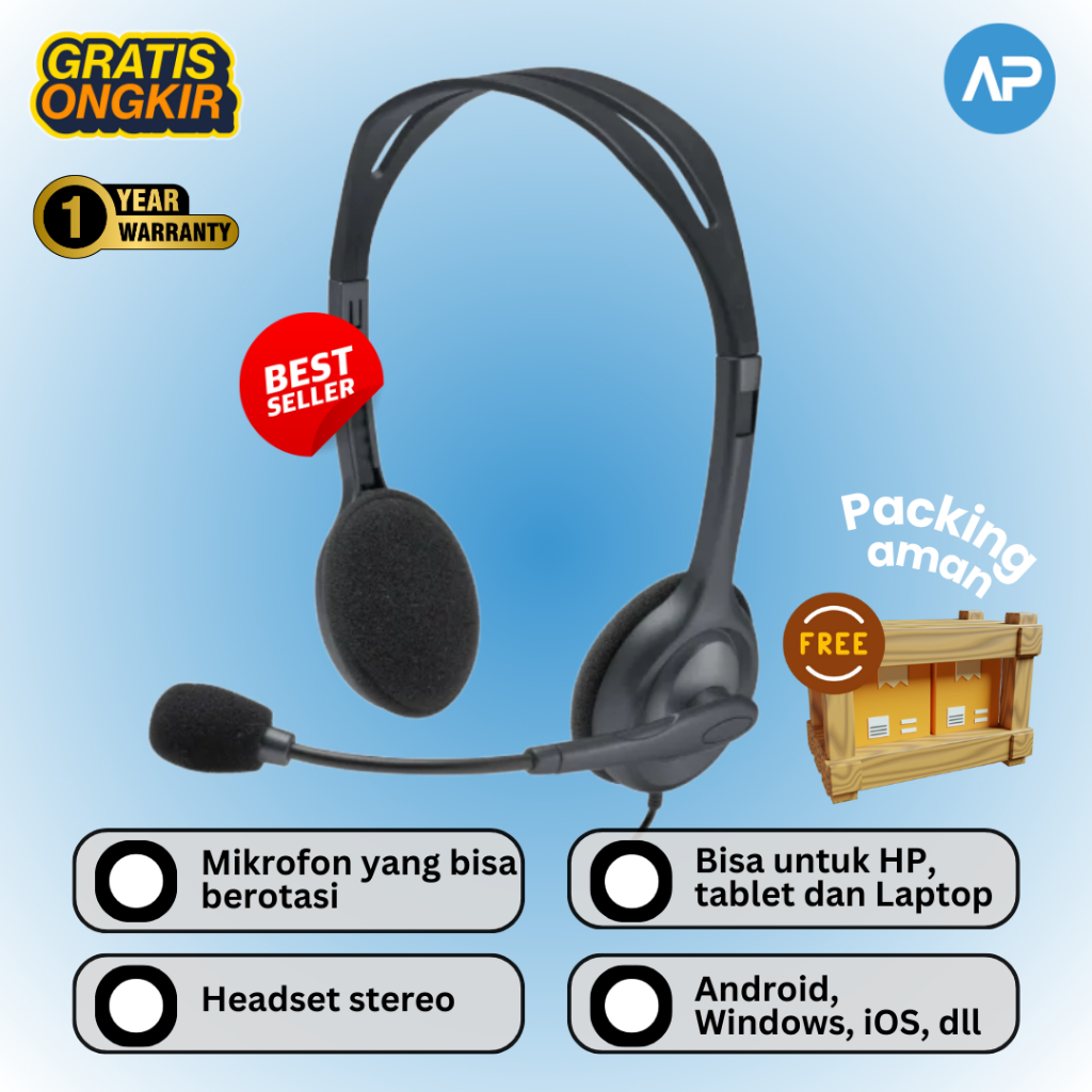 Logitech H110 & H111 Stereo Headset dengan Headband Adjustable dan Single Jack 3.5mm