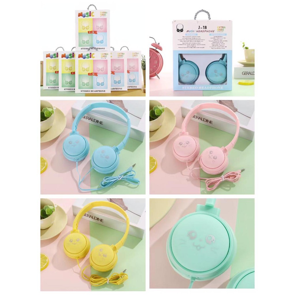 Headphone Macaron Bando J18 + Microphone Extra Bass Earphone - Handsfree - Headset Bando