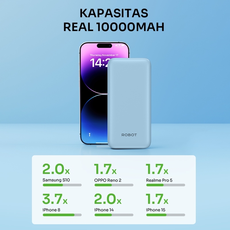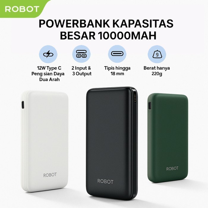 ROBOT RT180S | RT12 Smart Powerbank 10000mAh 12W Dual Input Port Micro USB & Type C | Triple Output USB-C USB-A (New RT180)- Garansi Resmi 1 Tahun