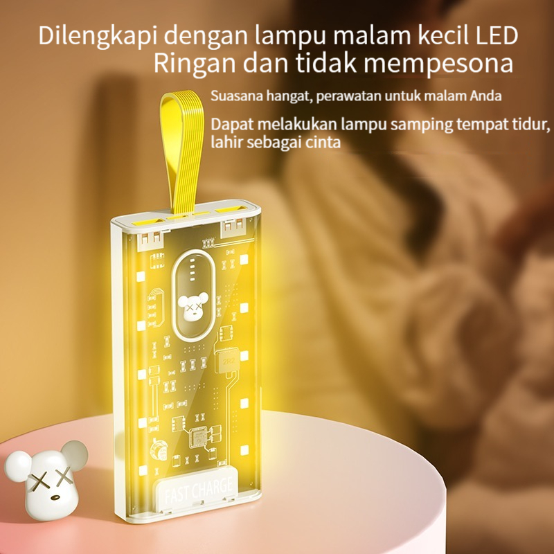 LENTIVEN Powerbank 30000 mAh 4 Kabel Cute LED Portable Fast Charger