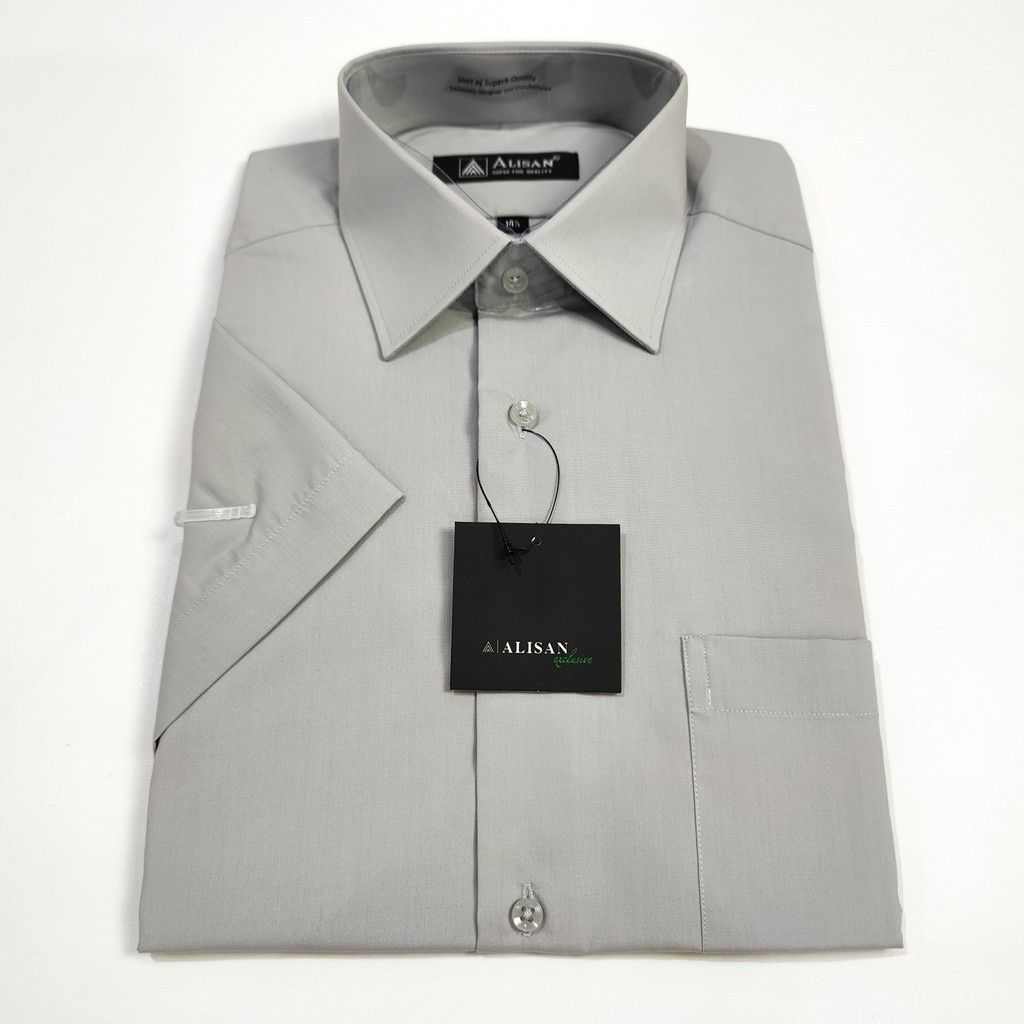 Kemeja Alisan Putih Polos Slimfit Lengan Pendek untuk Pria Model Kerja Formal Hitam Katun BajuKantor