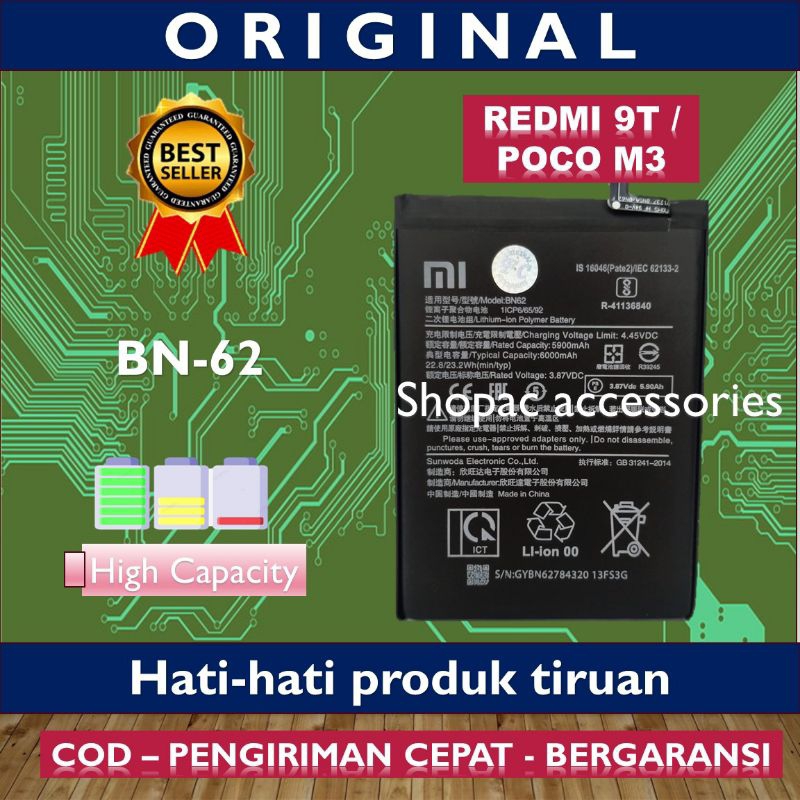 BATERAI XIAOMI REDMI 9T POCO M3 REDMI NOTE 3 BN62 BN 62 BM46 DOUBLE POWER