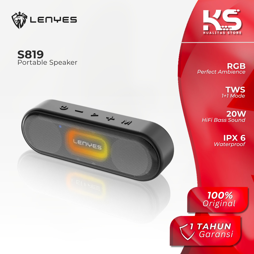 LENYES SPEAKER BLUETOOTH RGB TWS V5.0 WATERPROOF IPX6 20WATT HIFI STEREO S819