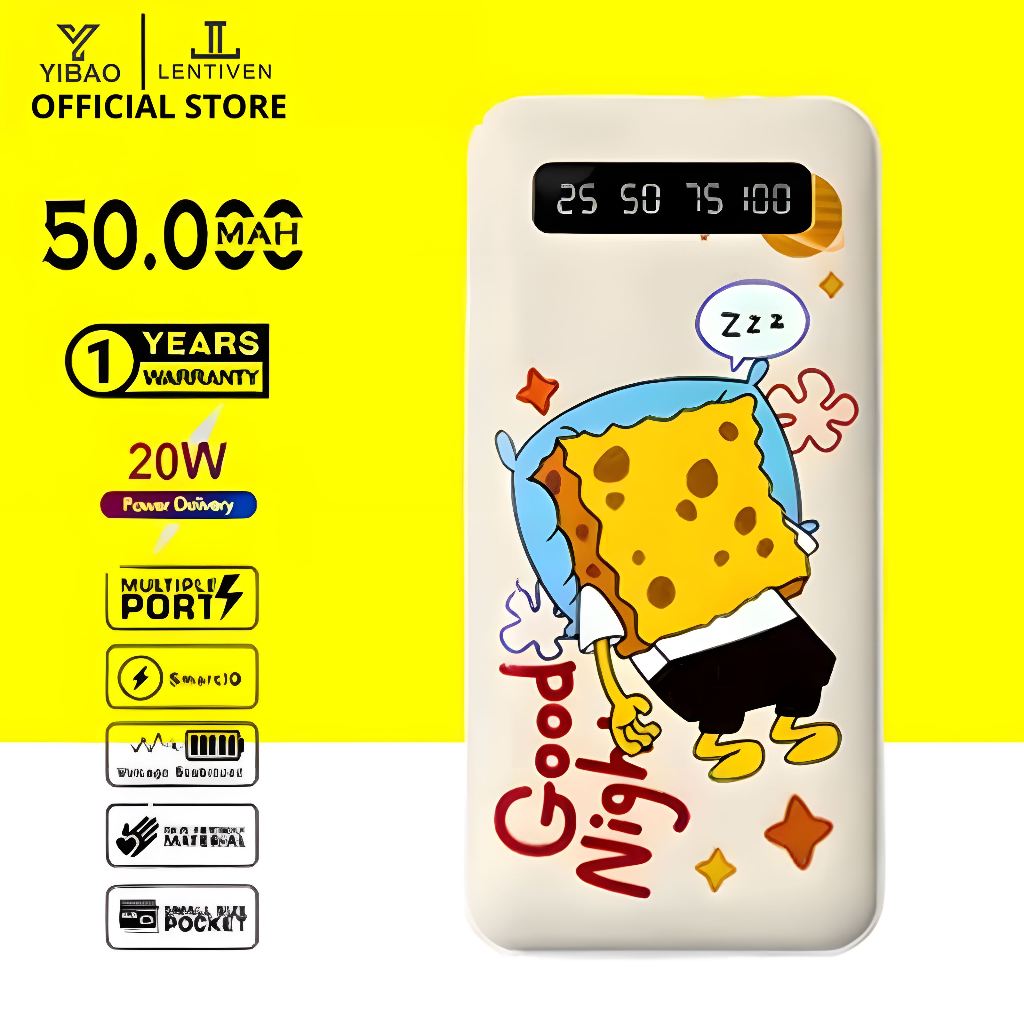 YIBAO LENTIVEN POWERBANK 50000 mAh 4 Kabel Full Capacity Mini Dual USB Portable Fast Charging