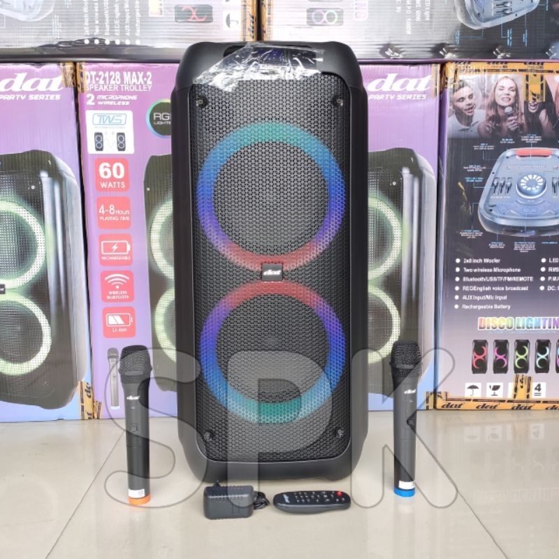Speaker Portable DAT DT 2128 MAX 8 inch 2 Mic Wireless