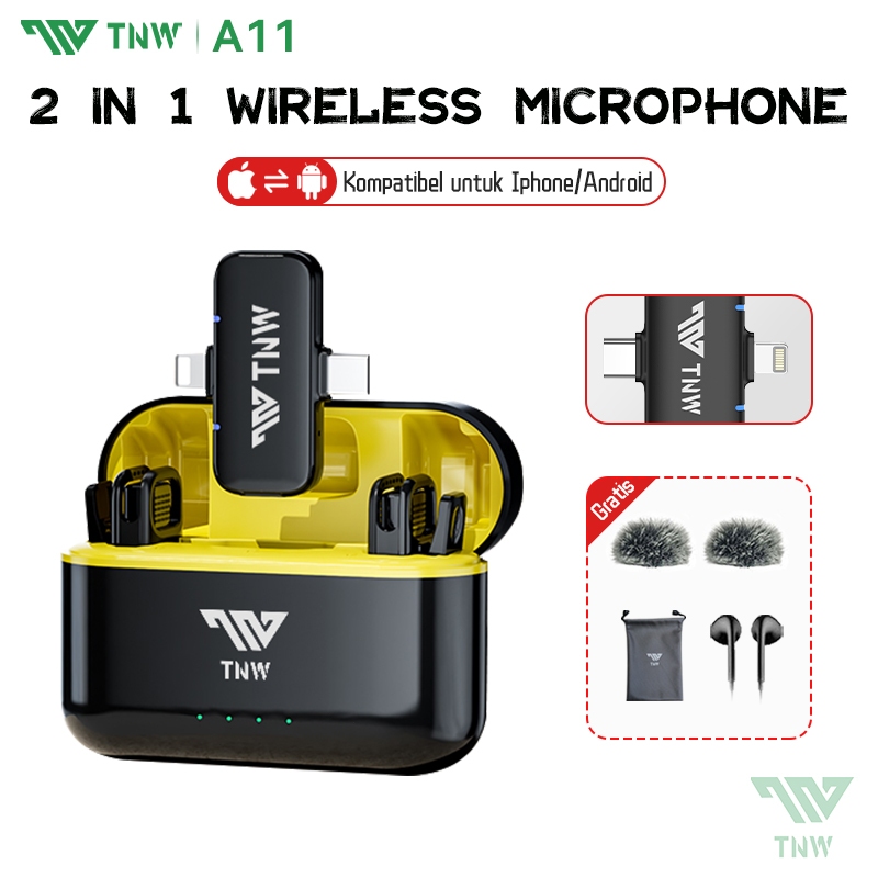 TNW A11 Wireless 2 Microphone Dual Mikrofon Youtuber Vlog with Charging Case Clip on Mic hp Wireless