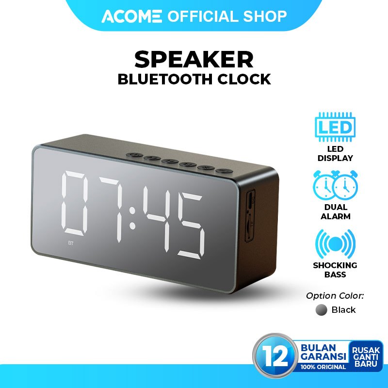 Acome Speaker Bluetooth 5.2 Jam Alarm LED Display Shocking Bass Garansi Resmi 1 Tahun A17