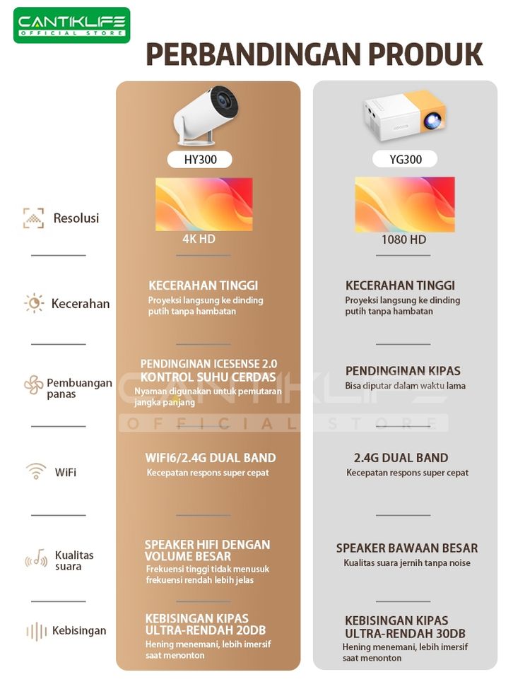 [Mall]HY300 Pro 4K Proyektor HD 100 Inci Portabel Mini untuk Dinding Kamar Tidur Pencerminan Layar Nirkabel - pkm20