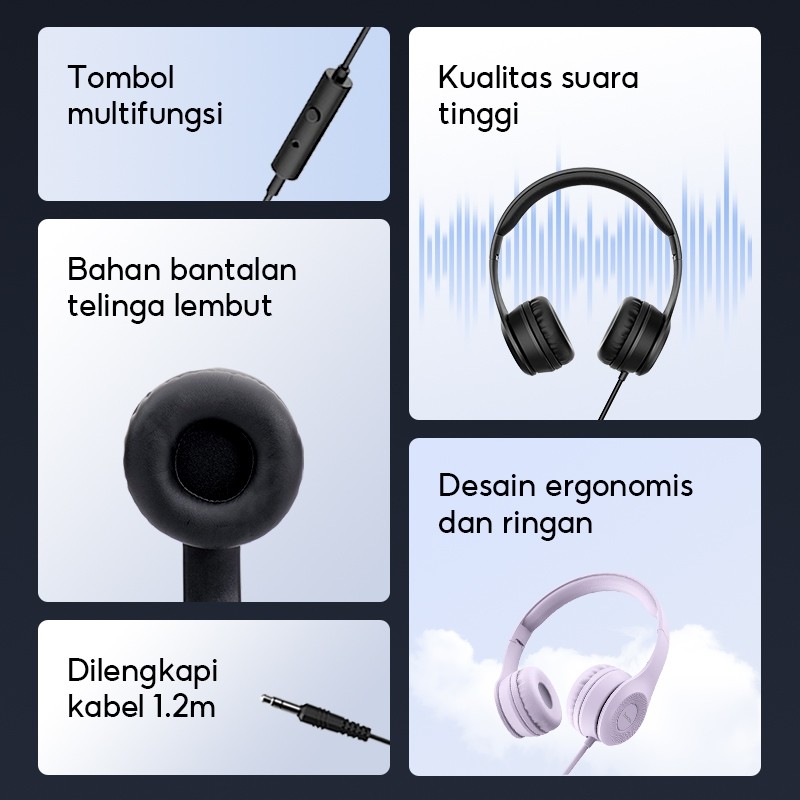 OHSOME - HOCO W21 Wire Control Headset Black | Grey | Purple