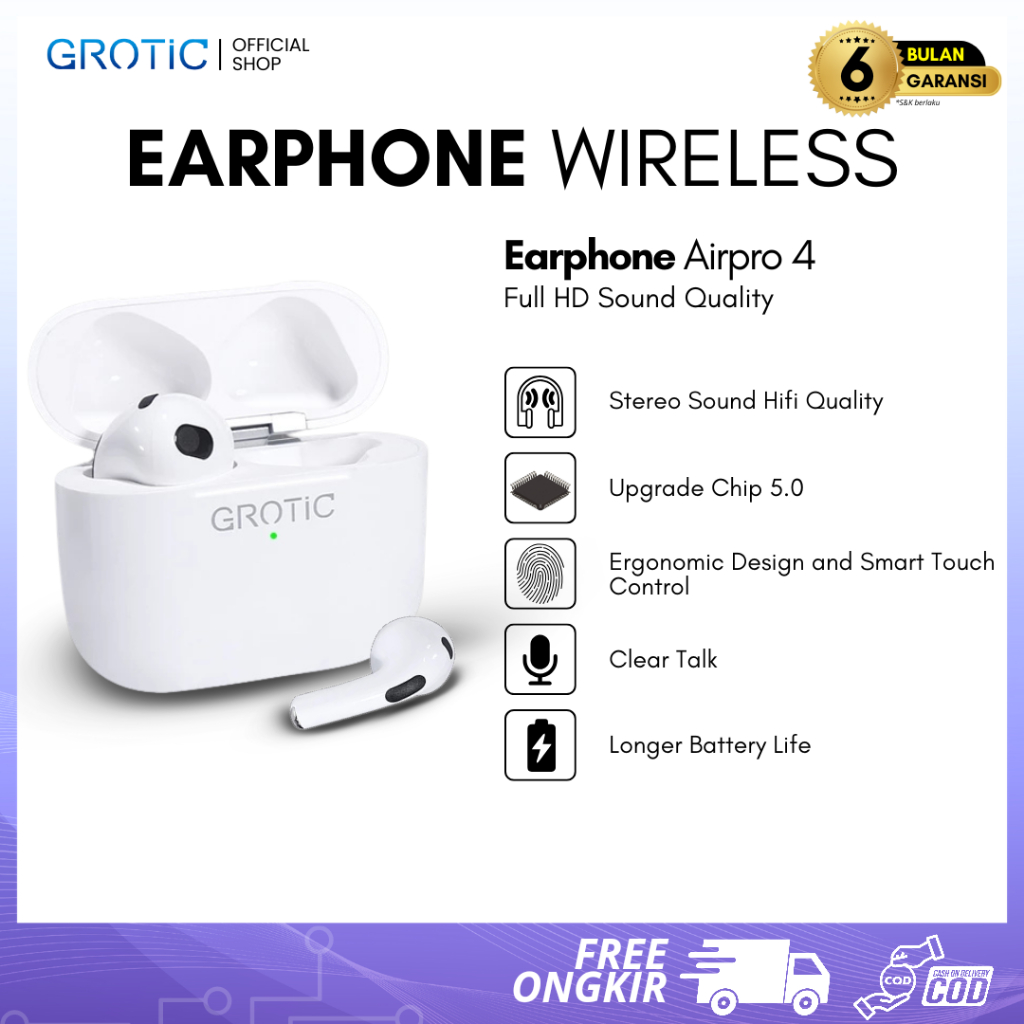 GROTIC Headset Bluetooth Stereo TWS Earphone Wireless Airpro4
