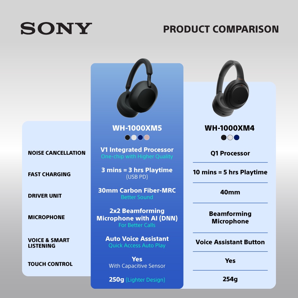SONY WH-1000XM5 Wireless Noise Cancelling Headphones with Hi-Res Audio, Bluetooth 5.2, 30H Battery, LDAC