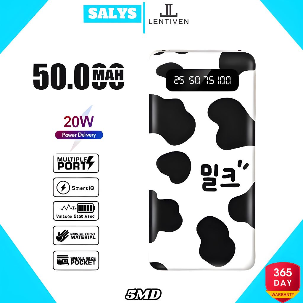 SALYS LENTIVEN POWERBANK 50000 mAh 4 Kabel Full Capacity Mini Powerbank Dual USB Portable Fast Charging Digital Display Power Bank Slim original