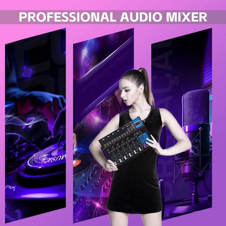 Mixer Audio Profesional Stage mixer 7 channel 4 channel mendukung bluetooth /USB/PC/MP3 bernyanyi