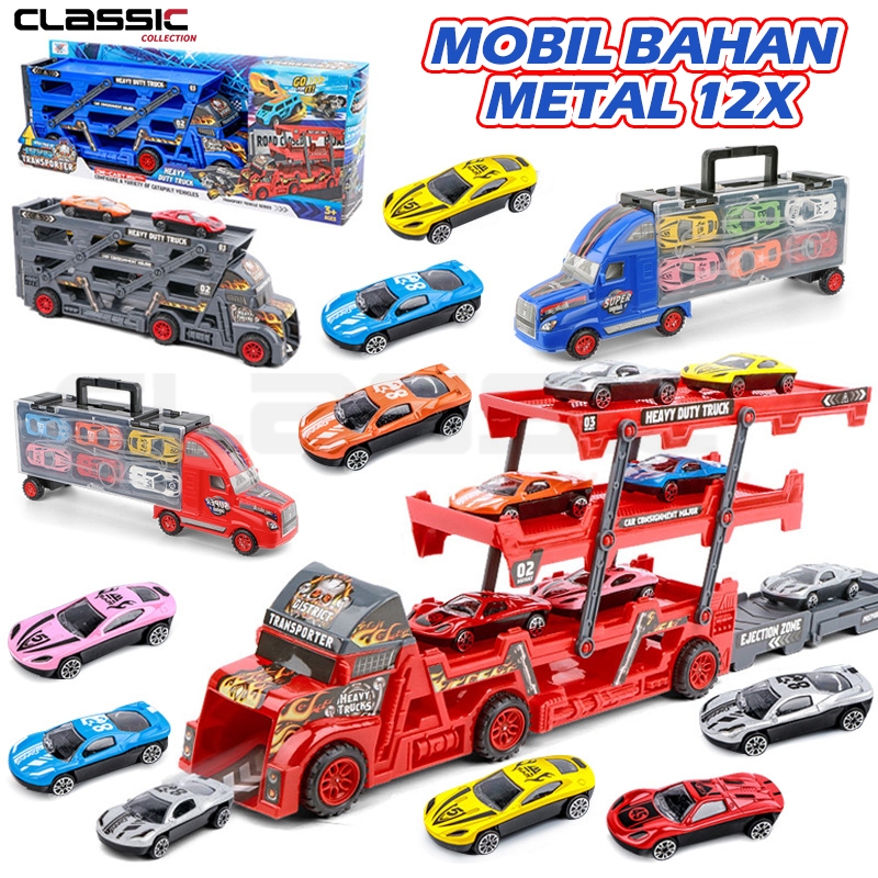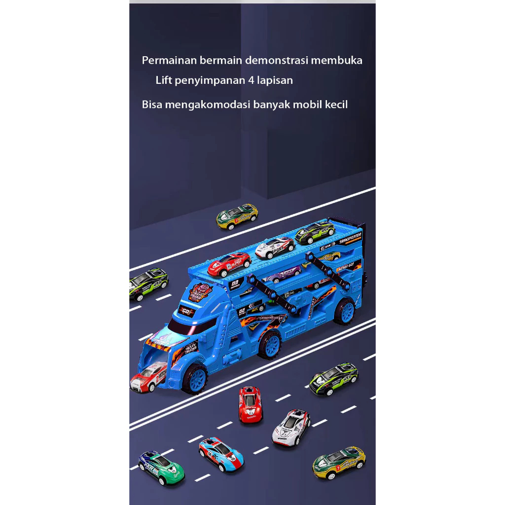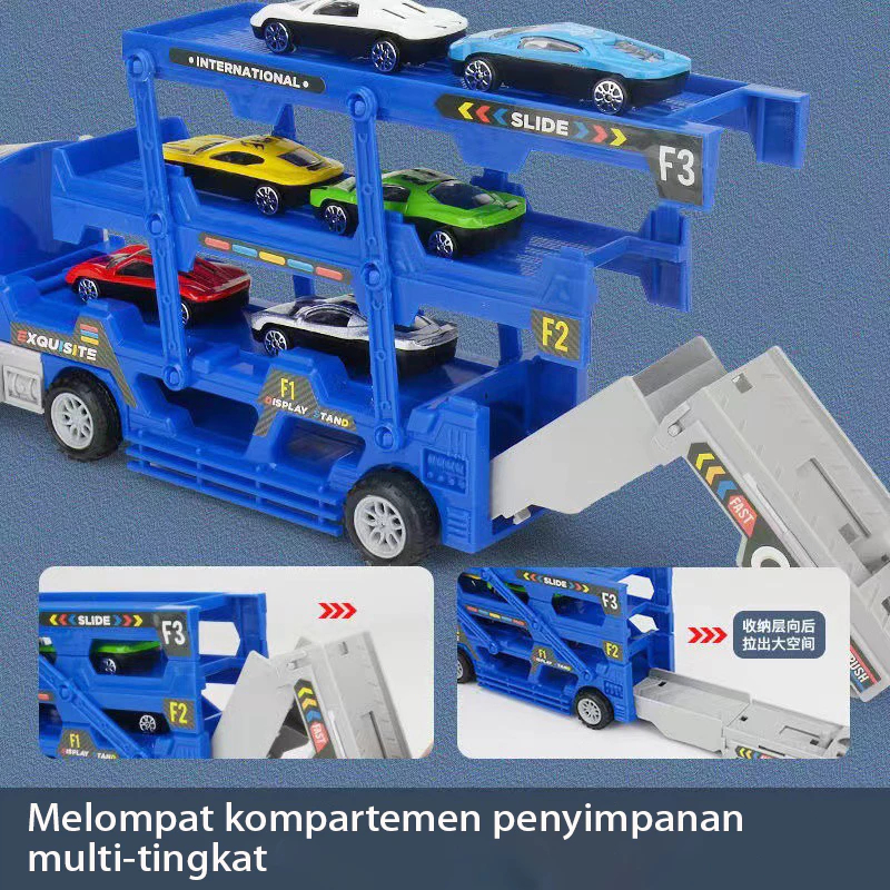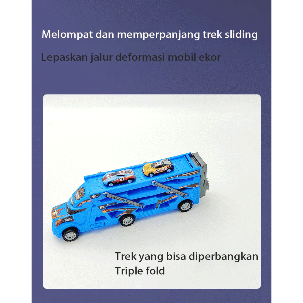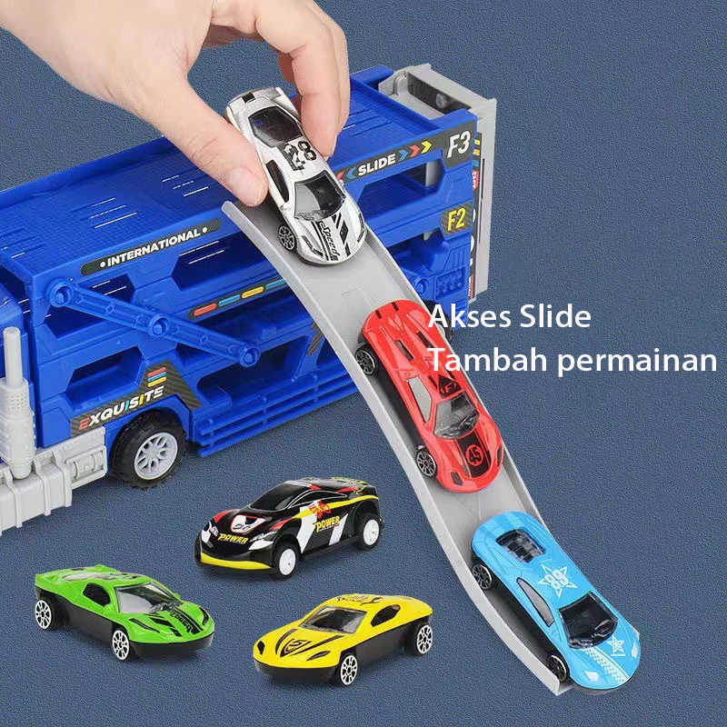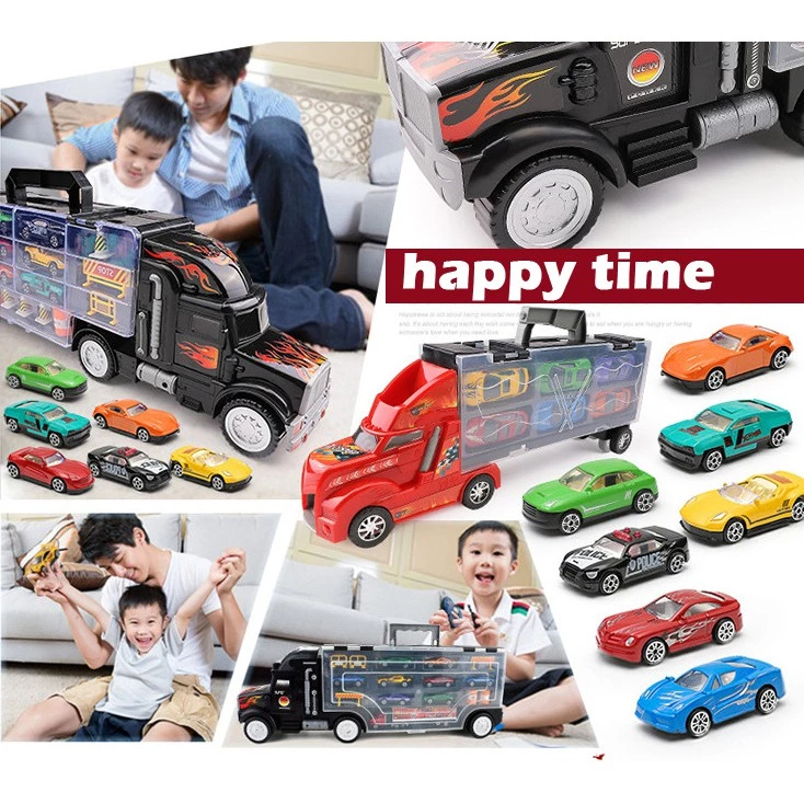 【】12 IN 1 Mainan Mobil/Mainan Anak Kendaraan Mainan Mobil Truk Container Deformasi Rel Balap Mobil - Container Car Catap
