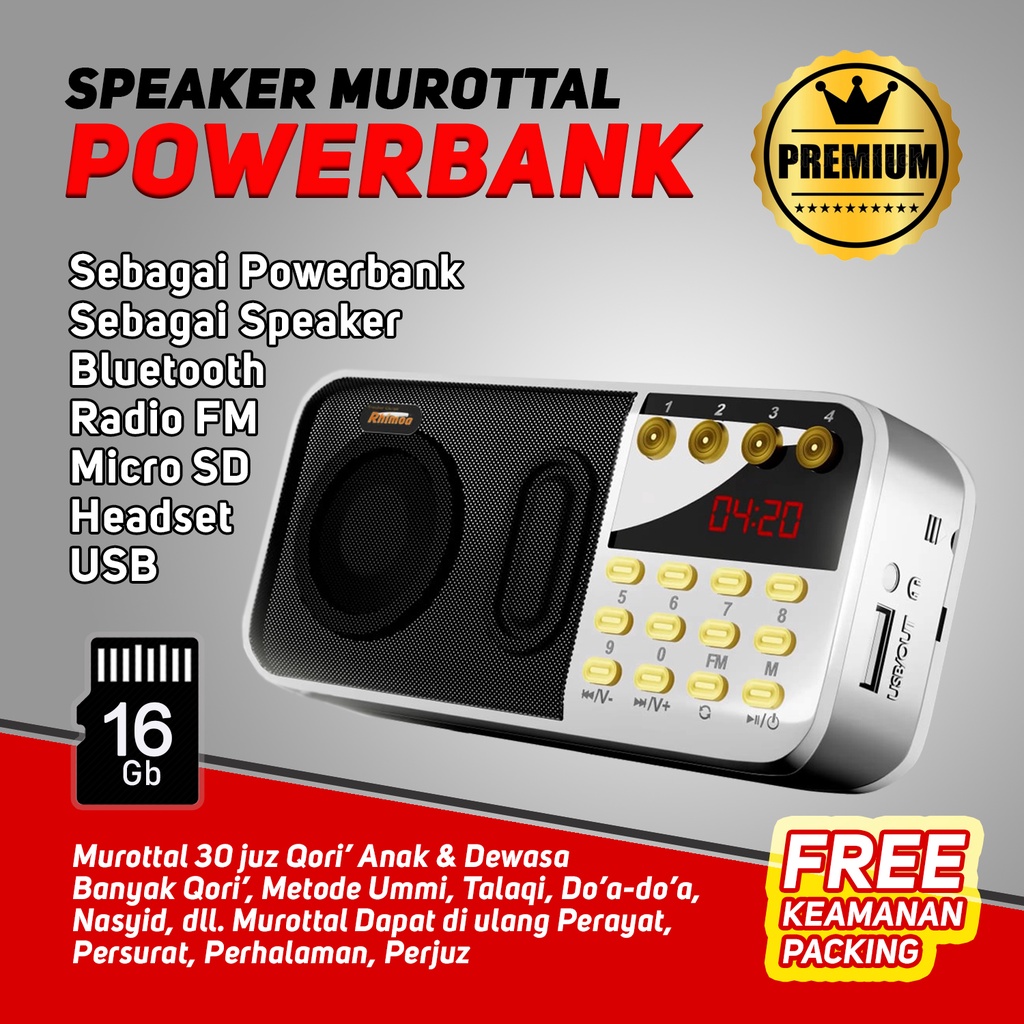 PREMIUM SPEAKER POWERBANK MUROTTAL - SPIKER MUROTAL AL QURAN 30 JUZ - TERLENGKAP 16GB
