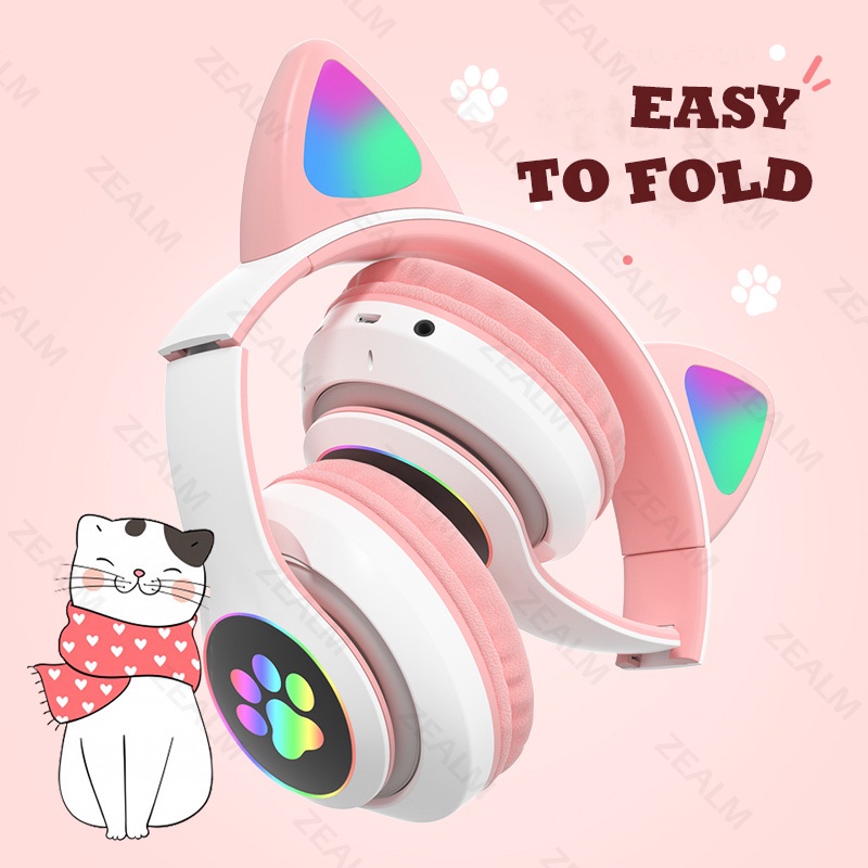 STN-28 Lipat LED Cat Ear Bluetooth Headphone Dengan Mic HiFi Stereo Wireless Headphone Gaming Headset Cute Handset Bluetooth Henset Bloetooth Hedset Gaming
