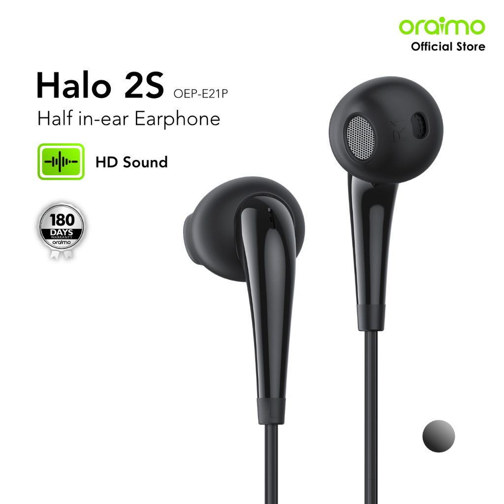 oraimo Headset Berkabel Earphone In-Ear Bass Universal 3.5Mm Jack Hitam Putih Panjang 1.2 Meter OEP-E21P Earphone Headset Kabel Mic Bass Stereo Wired Murah Gaming Sport Black White