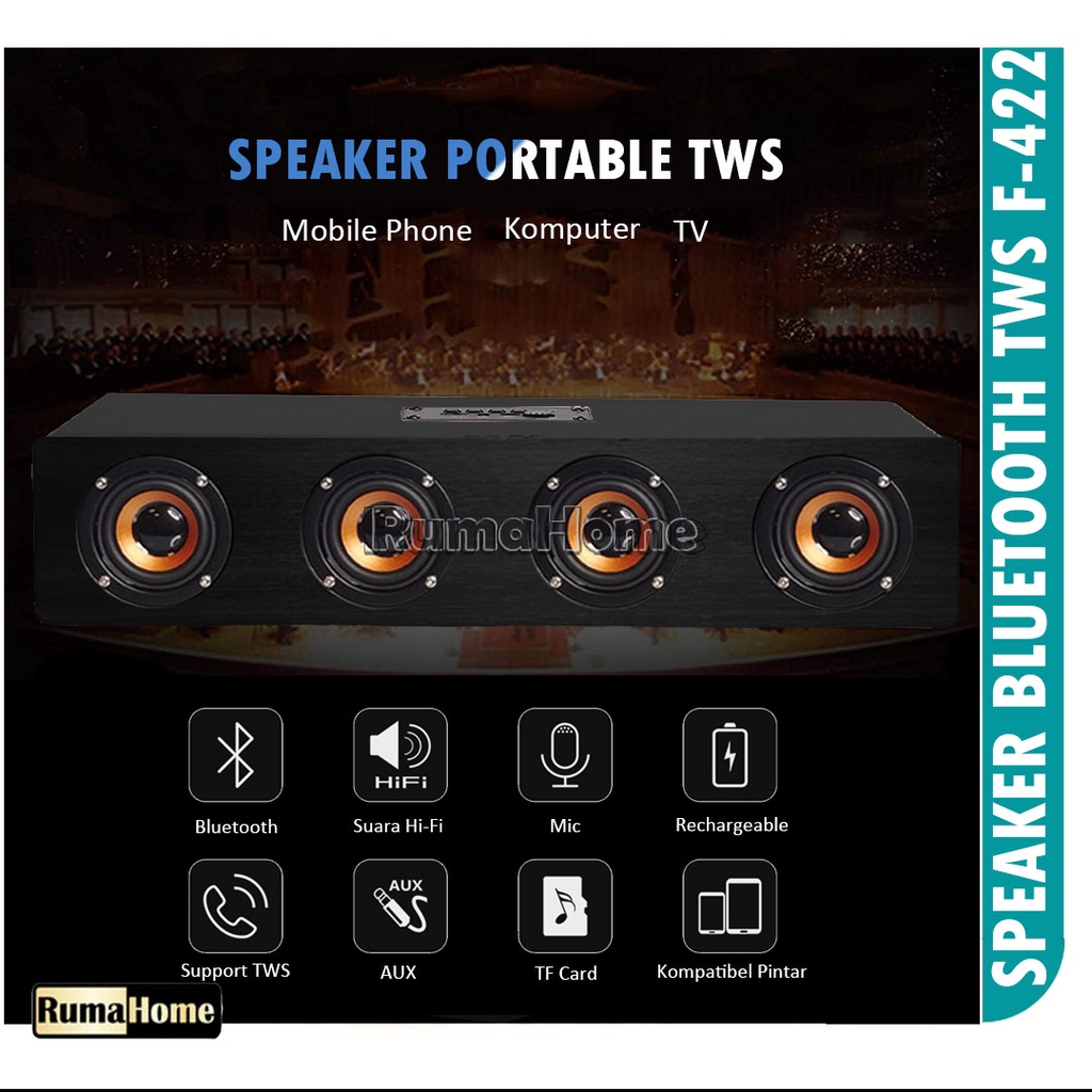 Soundbar F-422 Speaker Wireless theater audio, Stereo subwoofer Speaker Portable Garansi Resmi 1 Tahun